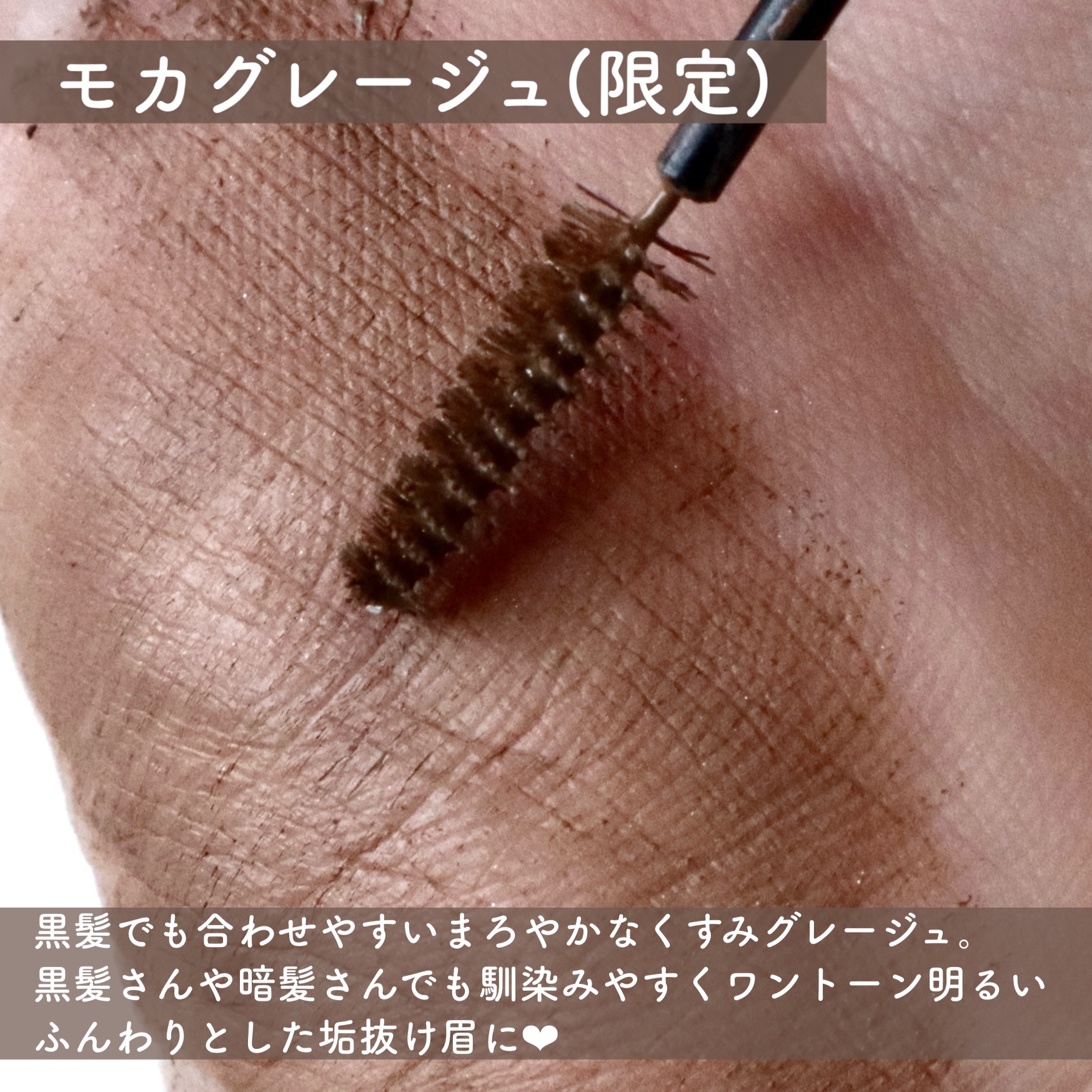 極小ブラシ ▶︎先端直径なんと3ミリ。肌にベタっとつかない。眉毛だけに塗ることができる。 デジャヴュ独自の薄膜フィルム。キレイに薄づき。眉毛がパリパリにならない。眉毛の質感が、やわらかいまま。 モカグレージュ▶︎くすみグレージュ。黒髪や暗髪さんの眉を、垢抜け眉に。