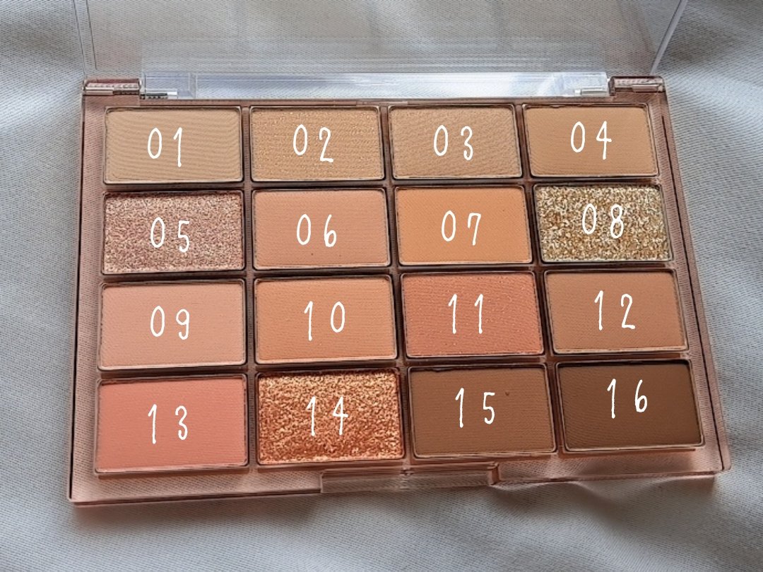 - 多彩なパーソナルカラーを基盤に作られたソフトブラーリングアイパレットで、16色を入れる事で、パレット1つでどんなメイクにもチャレンジできる形状が細長く持ち運びにも便利なパレット。 目元にやさしい使用感で広がり粉の飛び散りが少なく、しっかりと密着し染み込むように自然に馴染むテクスチャーが特徴。