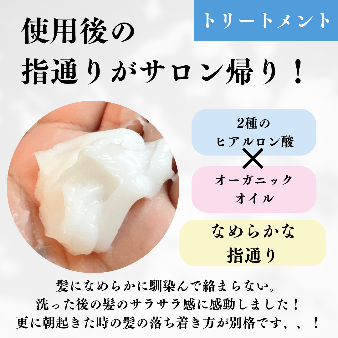 - とろけるような柔らかな質感と、毛先までツヤめくサラふわな指通りに導く美容液シャンプー/浸透補修トリートメント。 カシミヤ由来のケラチンをはじめとする3種のケラチン、シルクPPT&コラーゲンPPT、CMC類似成分などのこだわって配合した補修成分だけでなく、セラミド、ヒアルロン酸、オーガニックオイルなどの美容保湿成分をたっぷり配合することで、繰り返すカラーや熱ダメージによるパサつき・広がり・ゴワつきなどの蓄積ダメージにもしっかりアプローチ。 (シャンプー) 補修ケアはもちろん、ダメージ毛にも配慮したなめらかな洗い心地を追求し、アミノ酸系洗浄成分だけでなくPPT系洗浄成分も贅沢配合のこだわり抜いた処方で、キシまずとろけるようになめらかな洗い上りに。 (トリートメント) 髪の外部・内部から同時に髪の1本1本を包み込んでダメージ部分を疎水化することで、指通りやツヤ感だけでなく髪の質感を整えます。 また熱を利用して髪を補修するヒートリペア成分も配合。 ドライヤーなどの熱から髪を守り、同時にダメージケアも。 清楚な上品さを纏うホワイトフローラル&ペア―の香り。