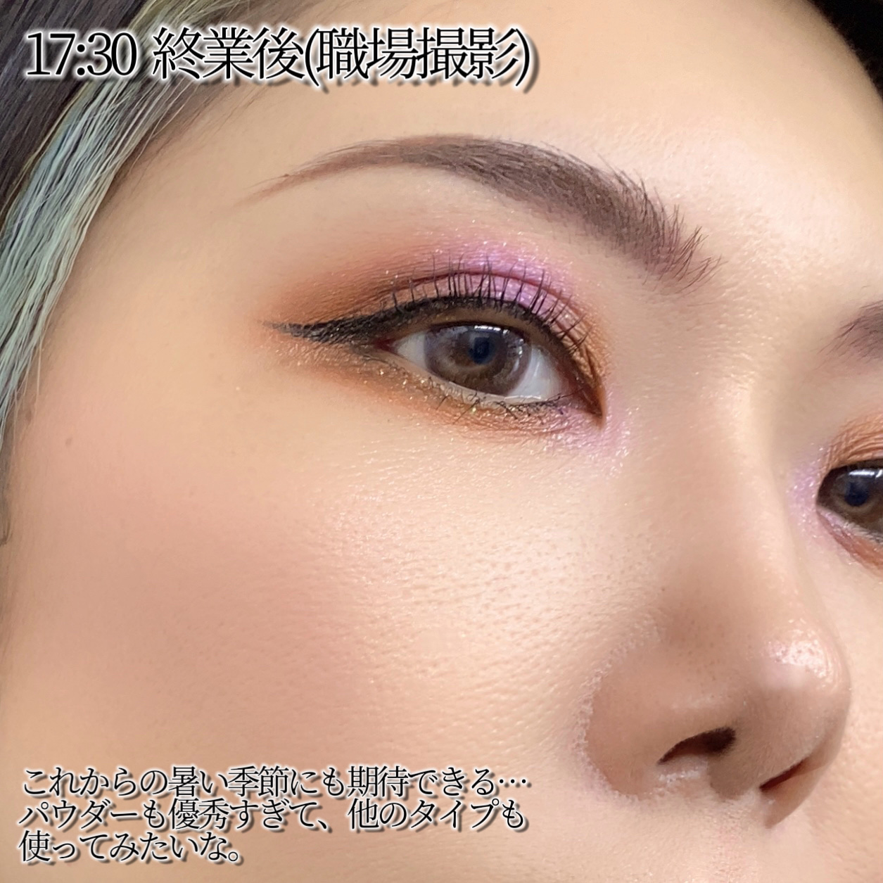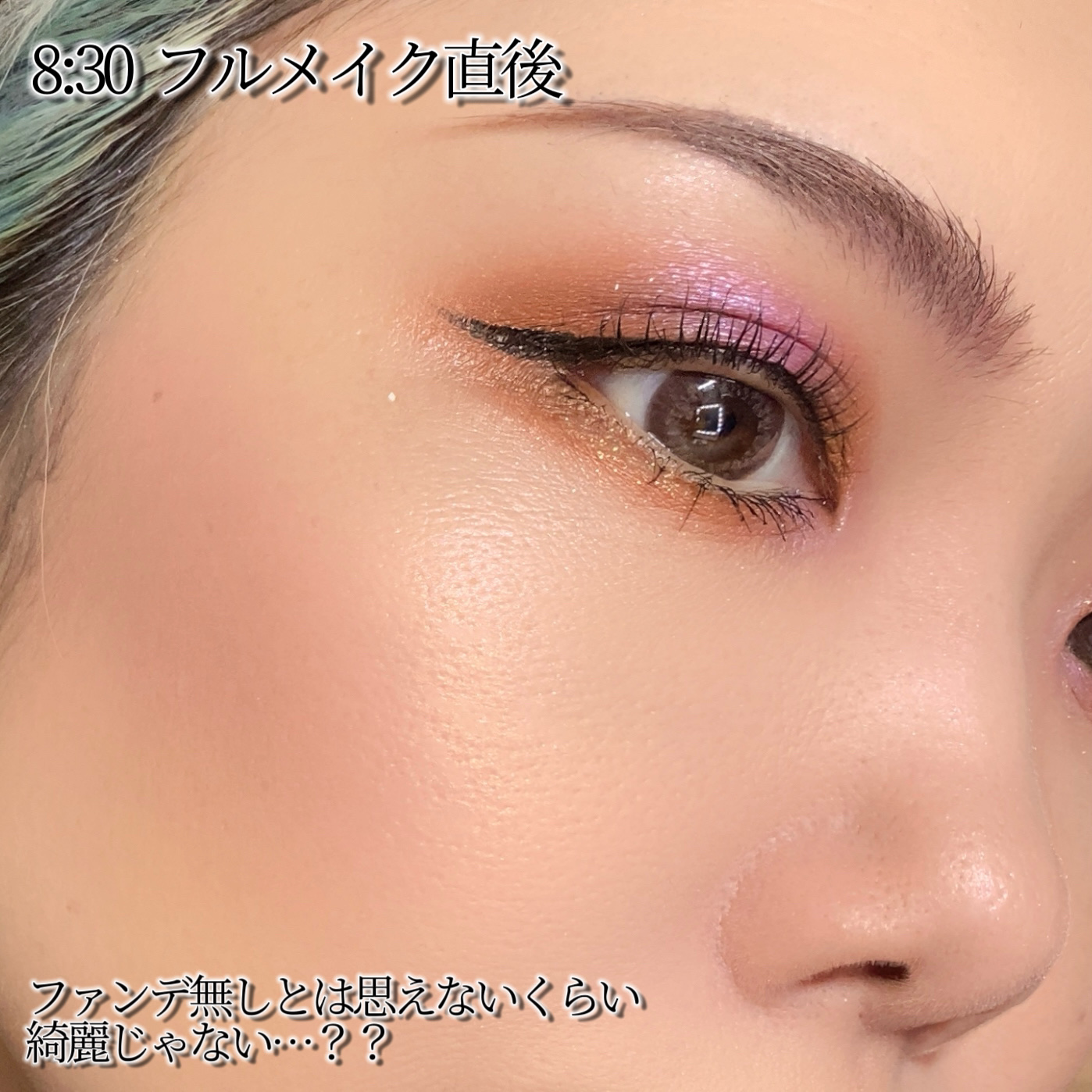 アイシーなピンクと水色のヘイローにしてみたよ🩷🩵やっぱりラメが可愛いパレット🥹✨✨ マットでベースを作ってから、同系色のラメを乗せたヘイローで、下まぶたは馴染みの良いようにベージュとピンクラメにシンプルに❣️ 雪の季節にやりたいメイクが出来たかな🤭☃❄