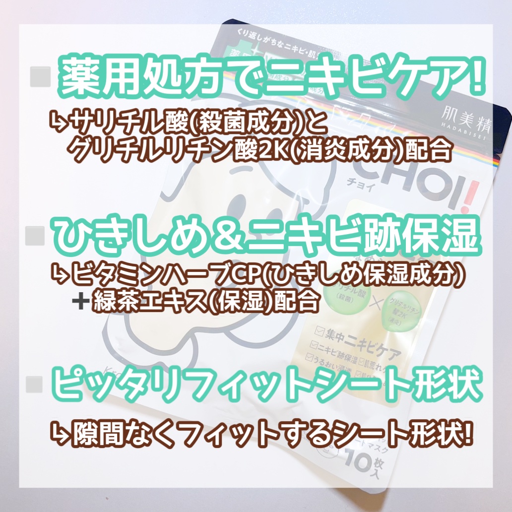 ![CHOI薬用マスク ニキビケア [医薬部外品]/肌美精/シートマスク・パックを使ったクチコミ(2枚目)](https://cloudflare.lipscosme.com/image/beca9c8692b630c63333cbc8-1734008787.png?auto=avif%2Cwebp&fio=1&orient=1&width=430)