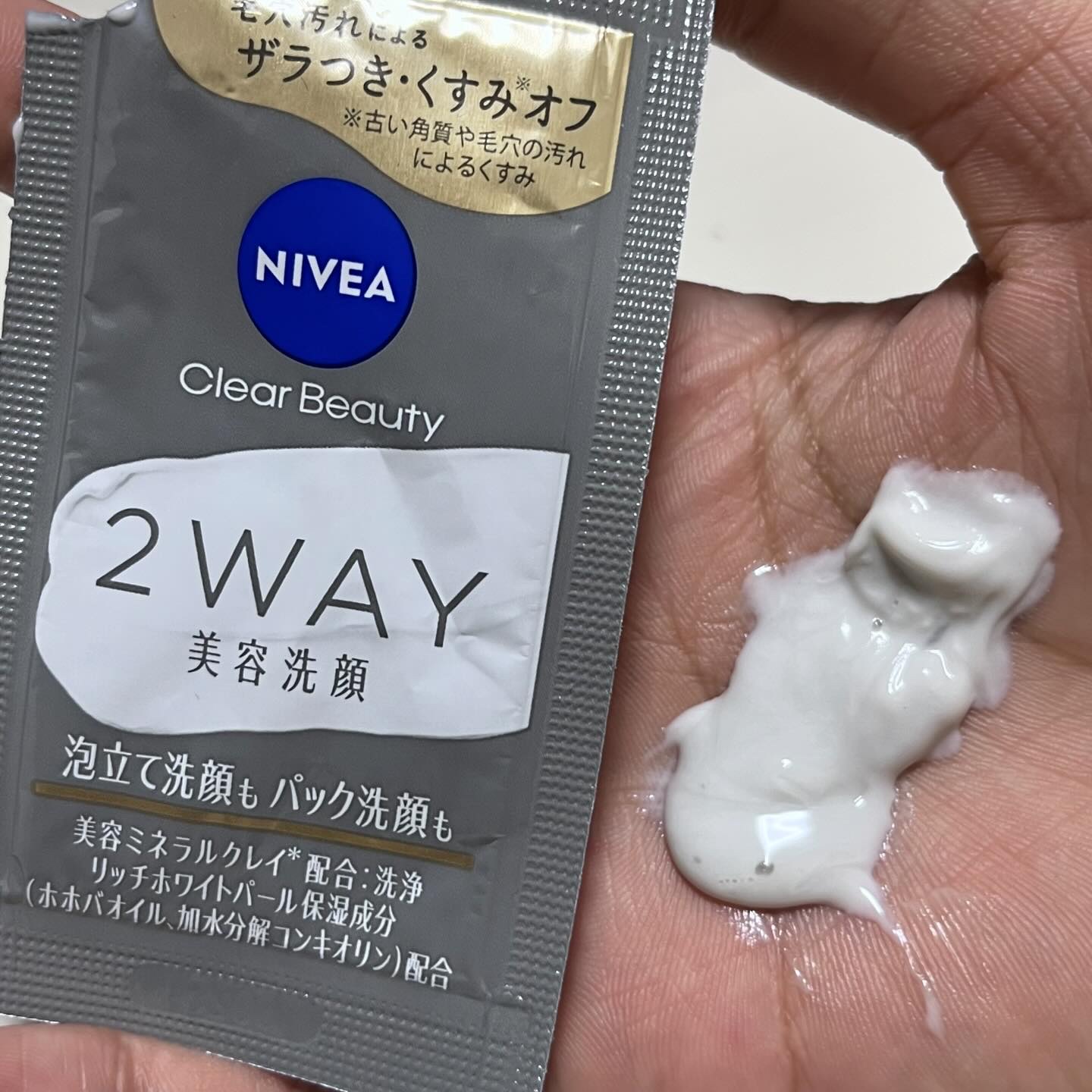- ※商品名変更(旧名:ニベア クリアビューティー2WAY美容洗顔)に伴い、商品パッケージを順次リニューアル。尚、これにかかる商品の返品・交換は承っておりません。 気になるザラつきレベルに合わせて洗い分け。 毎日の汚れには泡でしっかり。 ザラつき気になる日はパックでごっそり。 古い角質を柔らかくほぐし、汚れを吸着する洗顔料。 毛穴汚れによるザラつき、くすみ*までさっぱり落とします。 透明感のある、毛穴の目立ちにくいつるんとなめらか肌へ。 ●美容ミネラルクレイ配合:タナクラクレイ、カオリン(洗浄) ●リッチホワイトパール保湿成分配合:ホホバオイル、加水分解コンキオリン *古い角質や毛穴の汚れによるくすみ