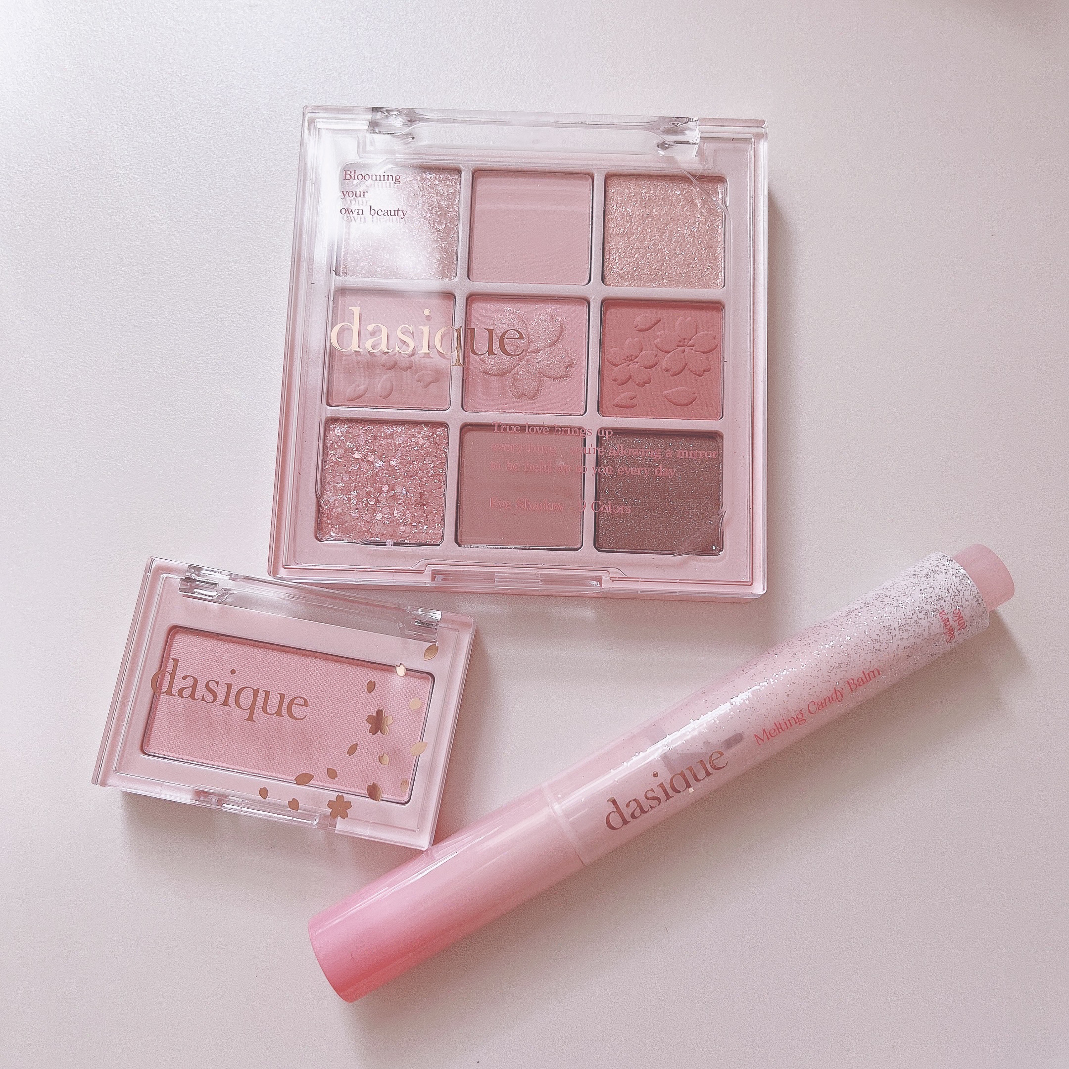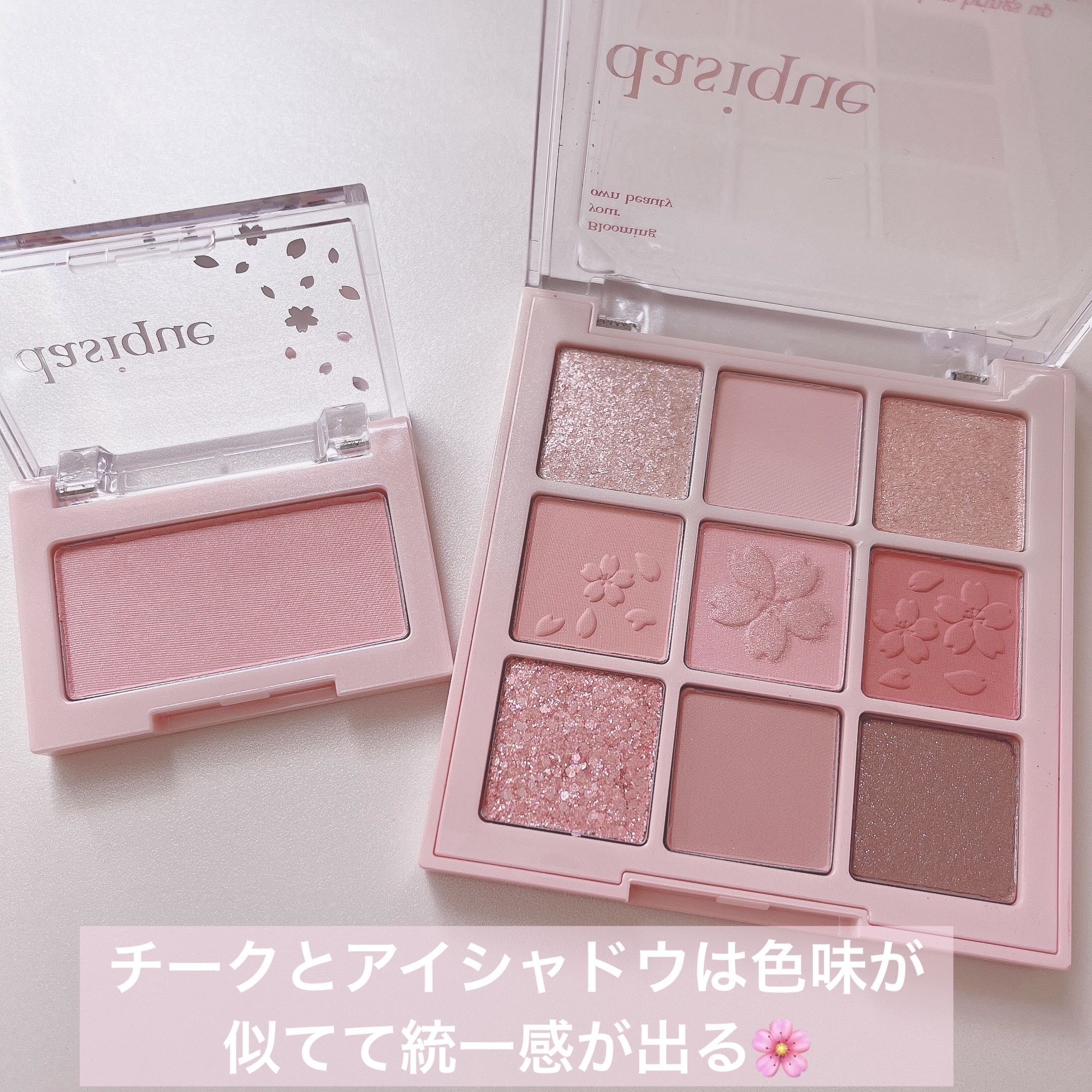 パケが可愛すぎて眺めているだけで癒される☺️ 粉質が細かくて密着力がすごくてヨレにくかったのが感動でした👀✨ ロマンティックブロッサムって名前なのが納得のキラキラふわふわな目元に仕上がりました🥹♡とにかくラメが繊細かつ煌めきがすごくて神の可愛さ…! 色が可愛いのと着け心地が軽かったのが良かったです⸜🫶🏻⸝ 透明感爆上がり細かいパール入りの白みピンク デイジークのアイシャドウは韓国コスメの中でも少しお高いイメージでしたが、その分粉質も良かったです🤍 桜シリーズが定番化されたらしくめちゃくちゃ嬉しいです🥰🌸
