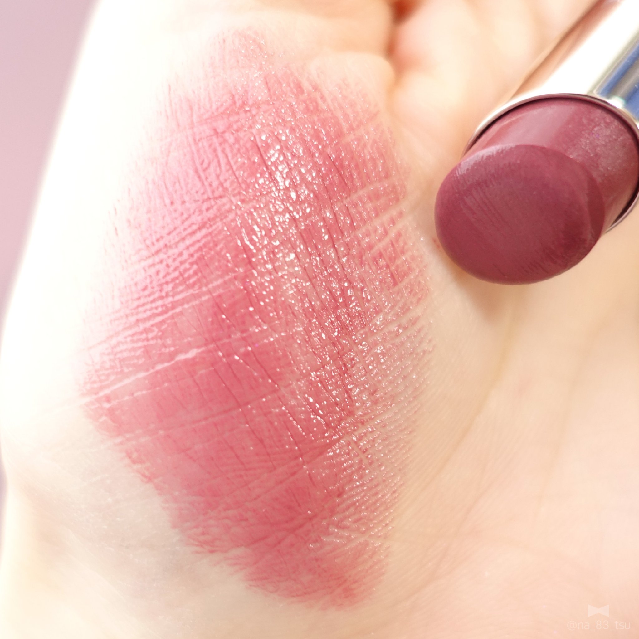 一見濃いパープルに見えるんですが、 頬に乗せるとふわっと青みのローズに発色して 凄く可愛い!! シアーな発色のチークだから濃さを調整しやすくて 使いやすい◎ 繊細なパールも入ってるからほおからツヤっと 綺麗に見えてとっても良い!
