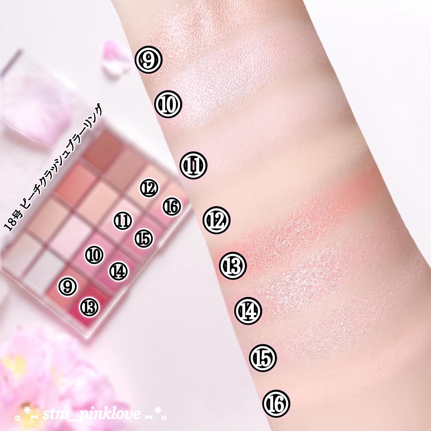 - 多彩なパーソナルカラーを基盤に作られたソフトブラーリングアイパレットで、16色を入れる事で、パレット1つでどんなメイクにもチャレンジできる形状が細長く持ち運びにも便利なパレット。 目元にやさしい使用感で広がり粉の飛び散りが少なく、しっかりと密着し染み込むように自然に馴染むテクスチャーが特徴。