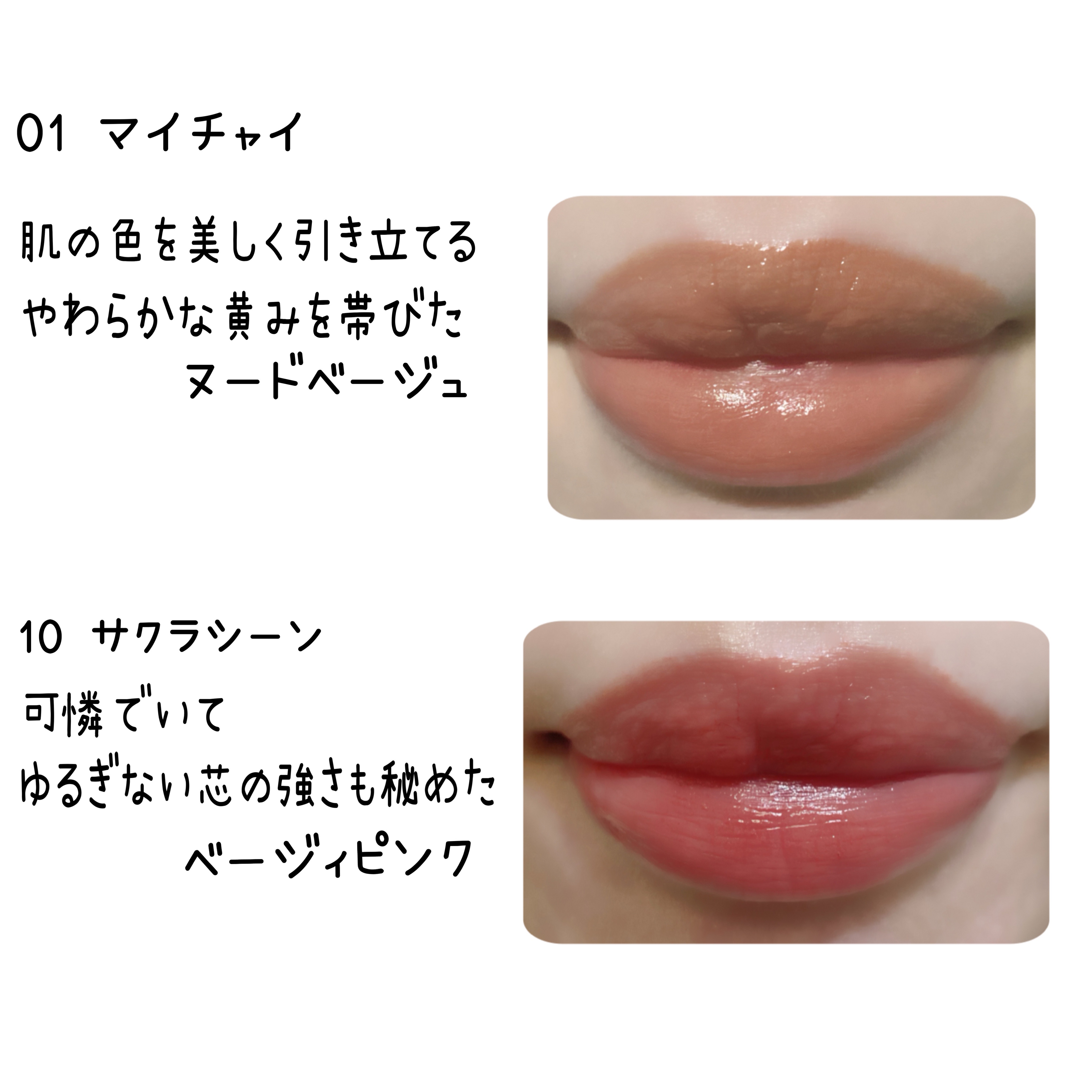- <01 マイチャイ> テトライソステアリン酸ジペンタエリスリチル、オクチルドデカノール、水添ポリイソブテン、ビスアルキル(C16-18)グリセリルウンデシルジメチコン、ヘキサヒドロキシステアリン酸ジペンタエリスリチル、ジカプリン酸ネオペンチルグリコール、ラウロイルグルタミン酸ジ(フィトステリル/オクチルドデシル)、リンゴ酸ジイソステアリル、パラフィン、イソノナン酸イソトリデシル、合成ワックス、マイクロクリスタリンワックス、ラウロイルグルタミン酸ジ(オクチルドデシル/フィトステリル/ベヘニル)、ホホバ種子油、水添マイクロクリスタリンワックス、トコフェロール、(エチレン/プロピレン)コポリマー、ポリエチレン、ヒアルロン酸Na、(+/-)(チタン/酸化チタン)焼結物、シリカ、セルロース、マイカ、ラウロイルアスパラギン酸Na、ラウロイルリシン、塩化亜鉛、酸化チタン、酸化鉄、水酸化Al、トリイソステアリン酸イソプロピルチタン、トリエトキシカプリリルシラン、合成フルオロフロゴパイト、黄4、青1、赤201、赤202 <02 レイディアントラセット> テトライソステアリン酸ジペンタエリスリチル、オクチルドデカノール、水添ポリイソブテン、ジカプリン酸ネオペンチルグリコール、ビスアルキル(C16-18)グリセリルウンデシルジメチコン、ヘキサヒドロキシステアリン酸ジペンタエリスリチル、リンゴ酸ジイソステアリル、ラウロイルグルタミン酸ジ(フィトステリル/オクチルドデシル)、パラフィン、イソノナン酸イソトリデシル、合成ワックス、マイクロクリスタリンワックス、ラウロイルグルタミン酸ジ(オクチルドデシル/フィトステリル/ベヘニル)、ホホバ種子油、水添マイクロクリスタリンワックス、トコフェロール、(エチレン/プロピレン)コポリマー、ポリエチレン、ヒドロキシステアリン酸エチルヘキシル、ヒアルロン酸Na、(+/-)(チタン/酸化チタン)焼結物、セルロース、ラウロイルアスパラギン酸Na、塩化亜鉛、酸化チタン、酸化鉄、水酸化Al、トリイソステアリン酸イソプロピルチタン、トリエトキシカプリリルシラン、合成フルオロフロゴパイト、黄5、青1、赤201、赤202 <03 シャイハート> テトライソステアリン酸ジペンタエリスリチル、オクチルドデカノール、水添ポリイソブテン、ビスアルキル(C16-18)グリセリルウンデシルジメチコン、ヘキサヒドロキシステアリン酸ジペンタエリスリチル、ジカプリン酸ネオペンチルグリコール、ラウロイルグルタミン酸ジ(フィトステリル/オクチルドデシル)、リンゴ酸ジイソステアリル、パラフィン、イソノナン酸イソトリデシル、合成ワックス、マイクロクリスタリンワックス、ラウロイルグルタミン酸ジ(オクチルドデシル/フィトステリル/ベヘニル)、ホホバ種子油、水添マイクロクリスタリンワックス、トコフェロール、(エチレン/プロピレン)コポリマー、ポリエチレン、ヒアルロン酸Na、(+/-)(チタン/酸化チタン)焼結物、シリカ、セルロース、マイカ、ラウロイルアスパラギン酸Na、ラウロイルリシン、塩化亜鉛、酸化チタン、酸化鉄、水酸化Al、トリイソステアリン酸イソプロピルチタン、トリエトキシカプリリルシラン、合成フルオロフロゴパイト、黄4、青1、赤201、赤202 <04 ルビー ラビリンス> テトライソステアリン酸ジペンタエリスリチル、オクチルドデカノール、水添ポリイソブテン、ビスアルキル(C16-18)グリセリルウンデシルジメチコン、ヘキサヒドロキシステアリン酸ジペンタエリスリチル、ジカプリン酸ネオペンチルグリコール、ラウロイルグルタミン酸ジ(フィトステリル/オクチルドデシル)、リンゴ酸ジイソステアリル、パラフィン、イソノナン酸イソトリデシル、合成ワックス、マイクロクリスタリンワックス、ラウロイルグルタミン酸ジ(オクチルドデシル/フィトステリル/ベヘニル)、ホホバ種子油、水添マイクロクリスタリンワックス、トコフェロール、(エチレン/プロピレン)コポリマー、ポリエチレン、ヒアルロン酸Na、(+/-)(チタン/酸化チタン)焼結物、シリカ、セルロース、マイカ、ラウロイルアスパラギン酸Na、ラウロイルリシン、塩化亜鉛、酸化チタン、酸化鉄、水酸化Al、トリイソステアリン酸イソプロピルチタン、トリエトキシカプリリルシラン、合成フルオロフロゴパイト、黄4、青1、赤201、赤202 <05 ムーンリット モーブ> テトライソステアリン酸ジペンタエリスリチル、オクチルドデカノール、水添ポリイソブテン、ビスアルキル(C16-18)グリセリルウンデシルジメチコン、ヘキサヒドロキシステアリン酸ジペンタエリスリチル、ジカプリン酸ネオペンチルグリコール、ラウロイルグルタミン酸ジ(フィトステリル/オクチルドデシル)、リンゴ酸ジイソステアリル、パラフィン、イソノナン酸イソトリデシル、合成ワックス、マイクロクリスタリンワックス、ラウロイルグルタミン酸ジ(オクチルドデシル/フィトステリル/ベヘニル)、ホホバ種子油、水添マイクロクリスタリンワックス、トコフェロール、(エチレン/プロピレ