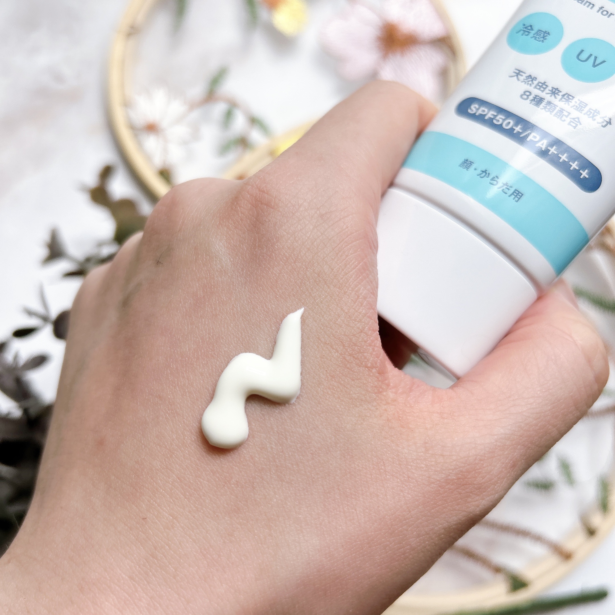 - SPF50+・PA++++ メントール誘導体*1配合で、肌にのせるとひんやり気持ち良く、顔に塗ってマスクをつけている時も爽やかな使用感。 スッキリとした清涼感が続くので、長時間快適に過ごしたいという人にぴったりです。 また「ハイブリッドヒマワリ油」など天然由来の保湿成分を8種*2配合することで、ベタつかずに肌の保湿が可能。 こまめに塗りなおしてもベタつかないさらっとしたひんやりクリームが紫外線と乾燥からお肌を守ります。 *1 メントキシプロパンジオール(香料) *2 グリセリン、ペンチレングリゴール、グリチルリチン酸2K、テトラヘキシルデカン酸アスコルビル、ハイブリッドヒマワリ油、ユキノシタエキス、オウゴン根エキス、アセロラ種子エキス