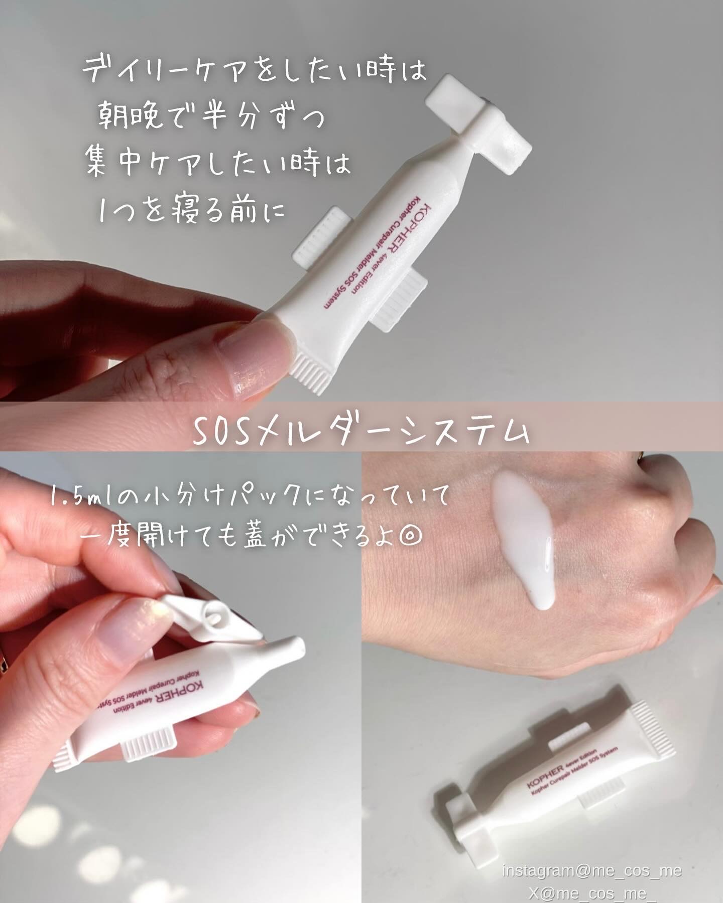 お肌悩みにSOS🚨🚨🚨KOPHERのキュリペアメルダーSOSクリーム1.5ml×20本入りの小分けタイプで旅行にもパッと持っていきやすいタイプ🛫✨旅行中って普段と違う環境で乾燥が気になったり食事が偏り等で肌のトラブルが起こりがち...そんな時...