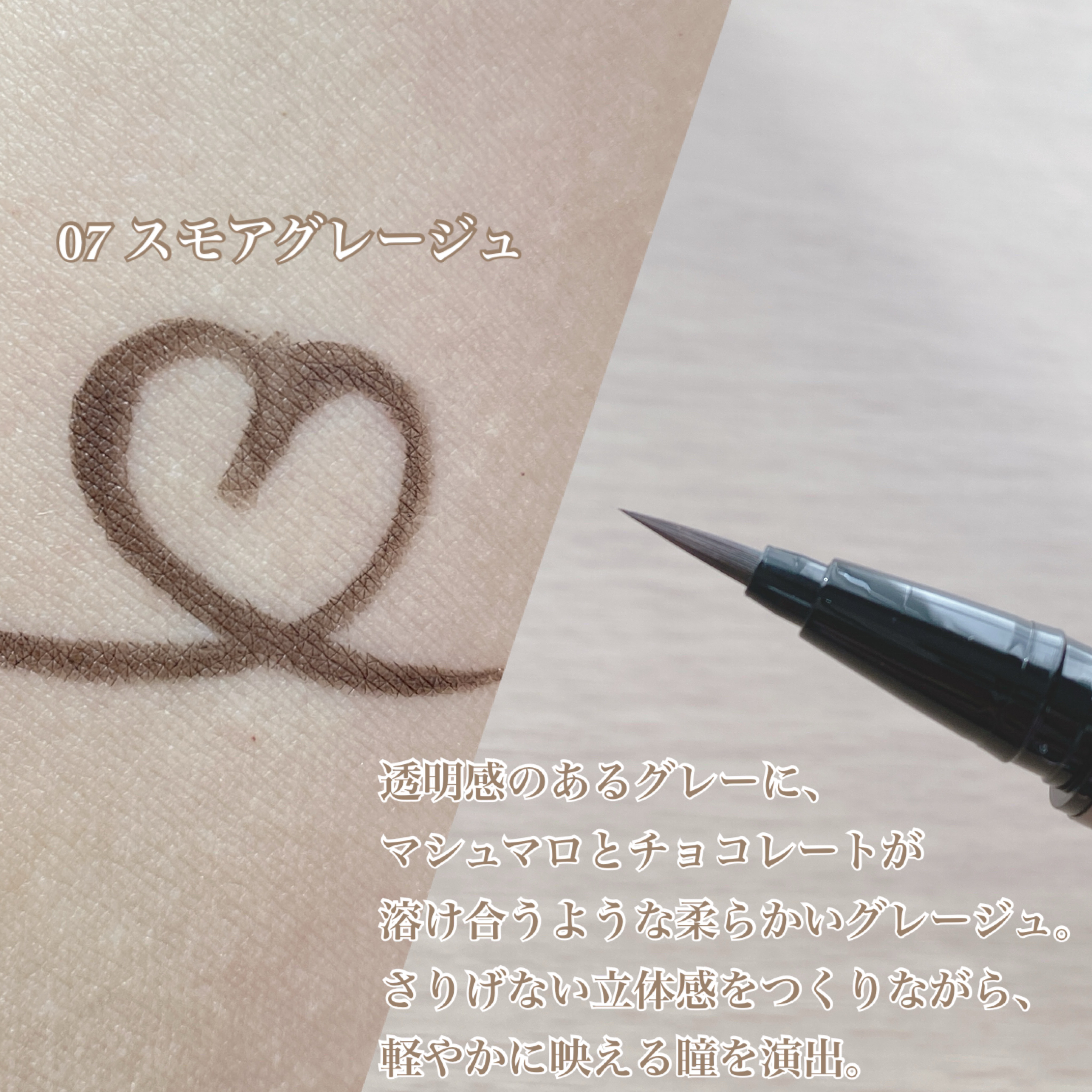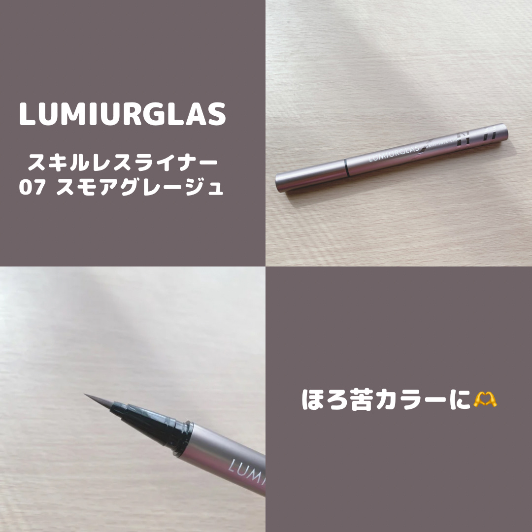 【使った商品】LUMIURGLASスキルレスライナー07.スモアグレージュ【商品の特徴】スムーズで目尻までかすれずにみずみずしく描ける。絶妙な筆の長さのコシ、筆先のなめらな質感が描きやすい。水、涙、汗、皮脂、摩擦から守る独自処方すぐに乾いて肌...