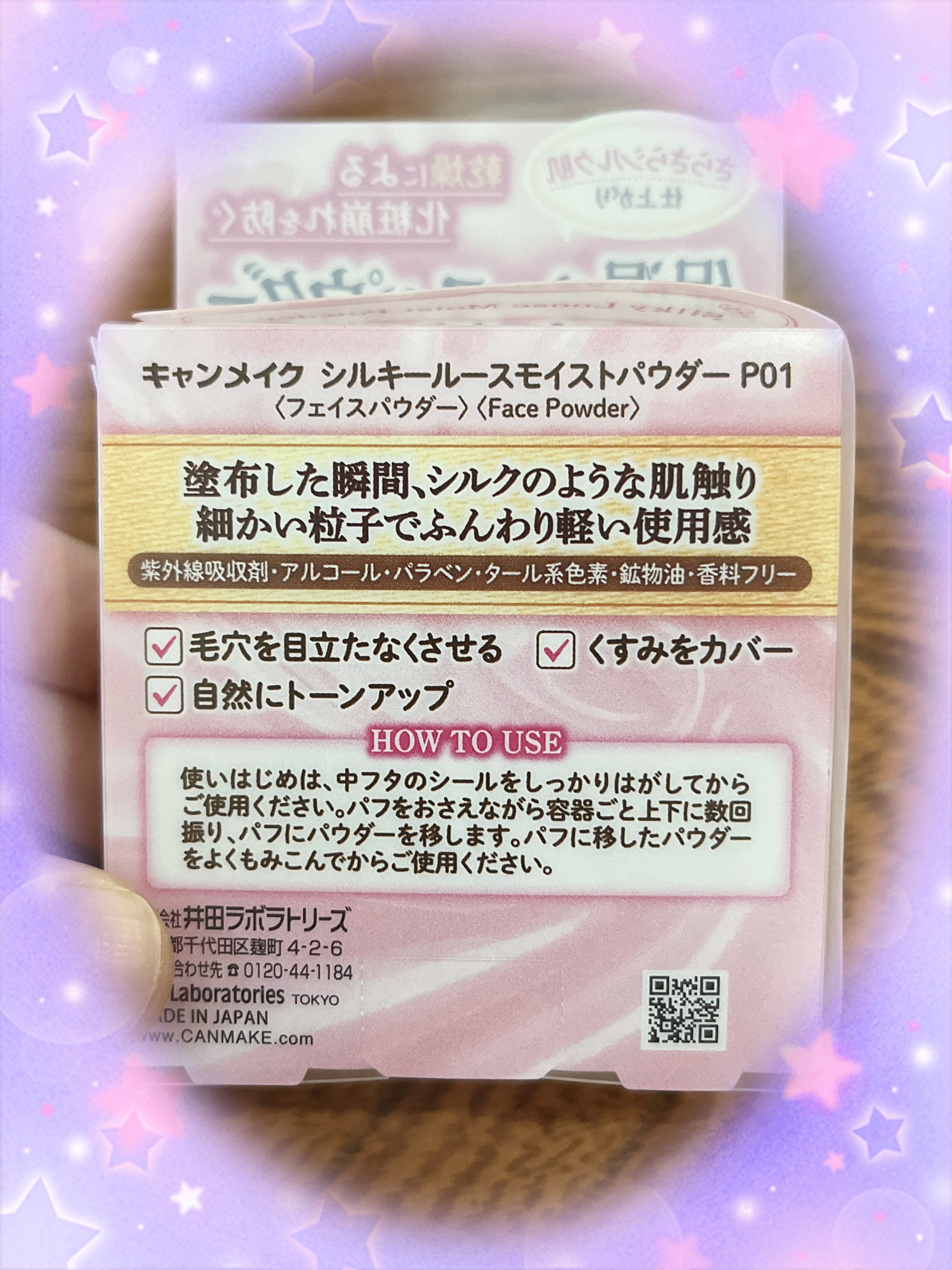- 素肌キレイ見え!シルク肌仕上がり! 乾燥による化粧崩れを防ぐ、保湿ルースパウダー 石けんでオフOK(単品使用時)、SPF23・PA++、 27種の美容液成分配合(うち3種は、お肌引き締め成分)の 保湿タイプのルースパウダー。 塗った瞬間、まるでシルクのヴェールをまとったようなサラサラのお肌に…♡