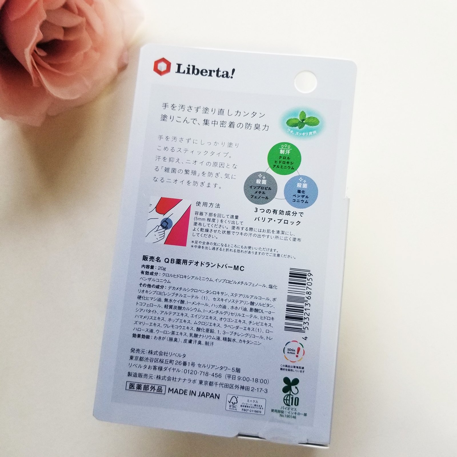 - 【医薬部外品】 目指したのは酷暑40℃対応デオドラント 20年こだわり続けた デオドラントの集大成* ニオイの悩み、裏切らない 手を汚さず塗り直しカンタン 手を汚さずにしっかり塗りこめるスティックタイプ 汗を抑え、ニオイの原因となる「雑菌の繁殖」を防ぎ、 気になるニオイを防ぎます 殺菌有効成分「イソプロピルメチルフェノール」「塩化ベンザルコニウム」を配合し、ニオイ菌を殺菌。 また制汗有効成分「クロルヒドロキシアルミニウム」で汗を抑え、過酷な気温状況下でも負けないデオドランドバーです。 *QB薬用デオドラントシリーズにおいて