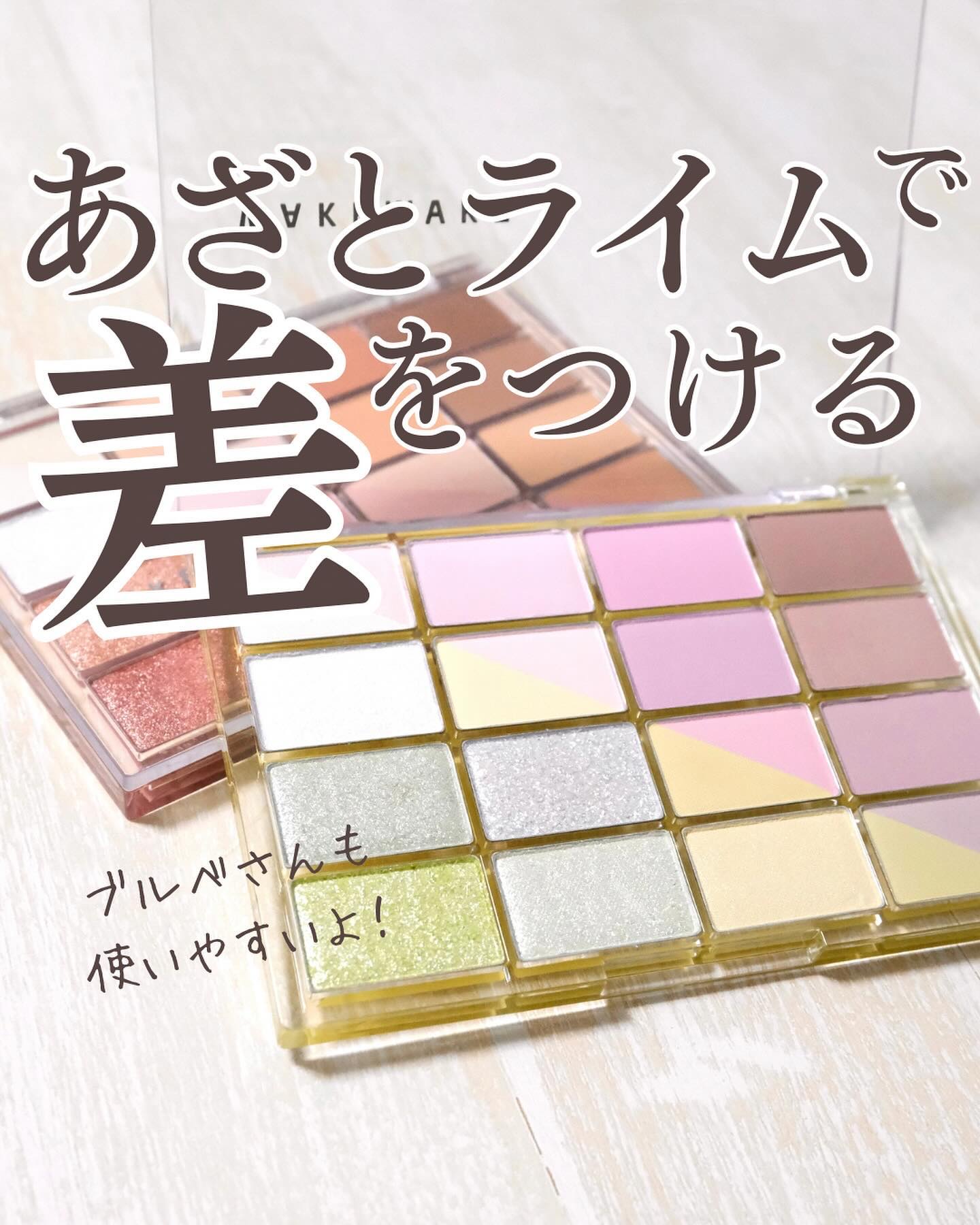 WAKEMAKEといえばアイパレ。 豊富なカラバリで似合うが見つかる。 今回使ったのは17.ライムクラッシュブラーリングなんと20色のパレット。 ピンクとライムがメインのパレットで春夏に使いたいかな。