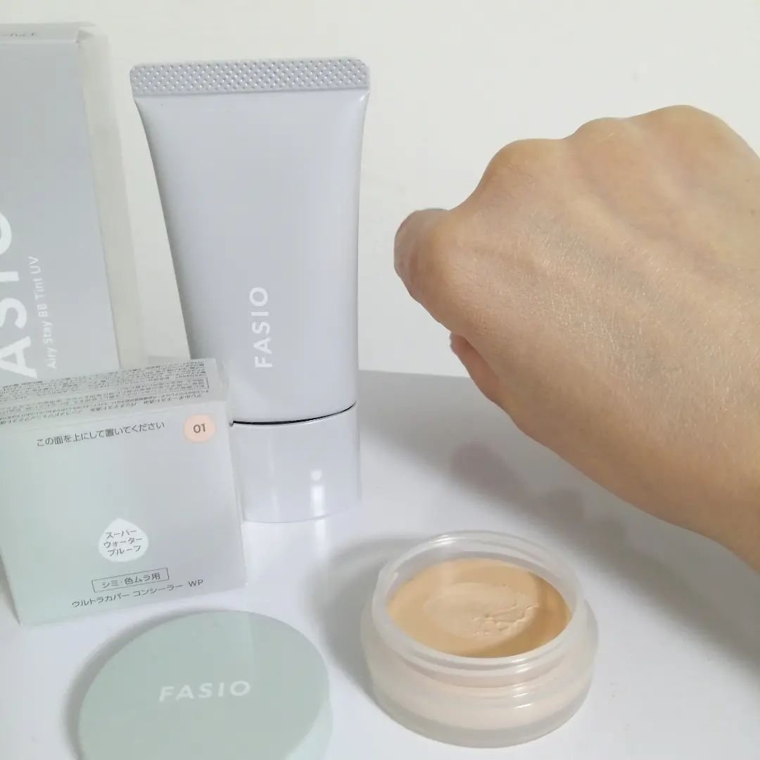 ◯FASIOエアリーステイBBティントUV01 ピンクベージュ『1本で日焼け止め・化粧下地・ファンデーション。軽いつけ心地で自然にカバーしてテカリ・くずれのないお肌に*。(*13時間化粧もちデータ取得当社調べ。)』♡SPF50+PA++++♡...