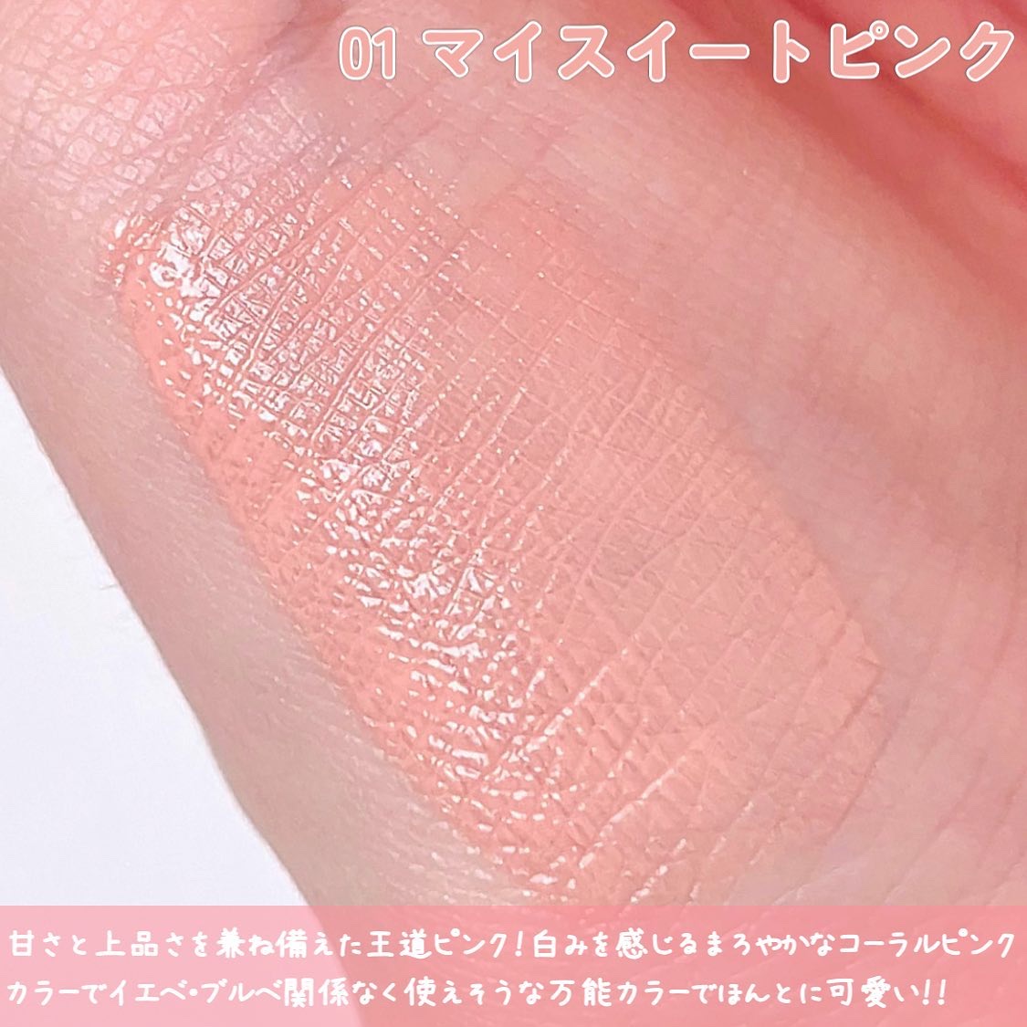 水分75%+4種の美容成分配合だからお肌にハリと艶が出て生き生きとしたお肌に見せてくれる🫶 ムラなくふわっと色が付いてくれるから失敗しにくい👌✨ 01のマイスイートピンクは甘さもありつつ上品なピンクベージュカラーで誰でも使いやすいカラー⋆꙳