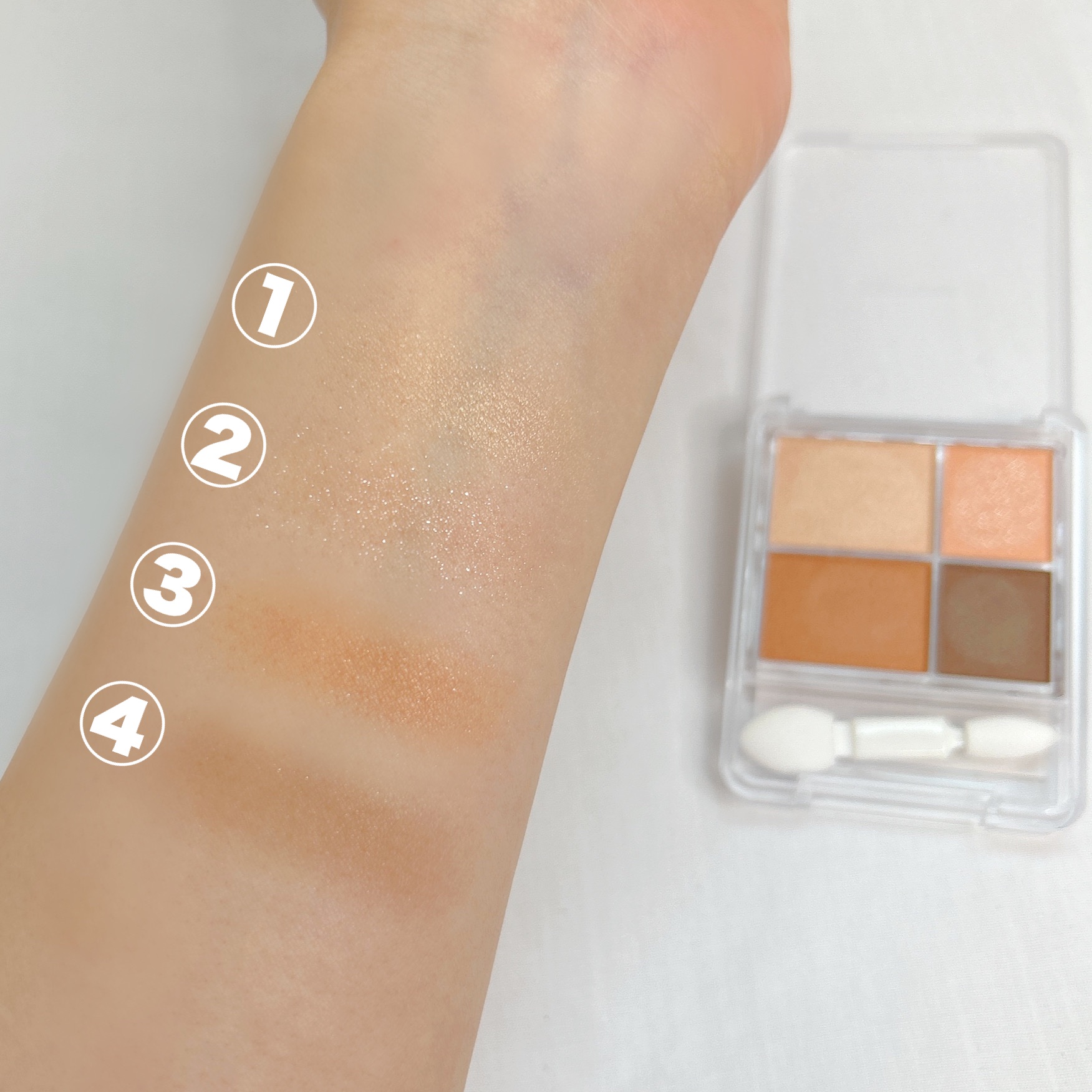 - 日常メイク&上品メイクがパレットひとつで完成! 肌なじみの良いカラーで立体的な目もとがつくれるアイシャドウ。 3色の肌なじみの良いカラーを順番に重ねるだけで ナチュラルな立体感メイクが完成します。 華やかに仕上げたいときはニュアンスカラーをプラスオン。 シーンに合わせて仕上がりを選べる4色セットのアイシャドウです。 無香料 【商品特徴】 ・まぶたにフィットするしっとりパウダーで肌への密着性がよく、仕上がりが長持ちします。 ・ひとぬりできれいに発色し、ムラのない仕上がりです。 ・ブラウンやグレーを基調とした肌なじみの良いカラーバリエーションです。 ・しっとりと肌ざわりのよいチップ付。 【使用方法】 ・?ハイライトカラーをチップ(大)でアイホール全体にぬります。 ・?ミディアムカラーをチップ(小)で目の際から上に向かってぬります。 ・?ラインカラーをチップ(小)で目の際にぬります。 ・?お好みでニュアンスカラーをチップ(大)でアイホール全体になじませます。 ※目もとをより大きく、印象的にしたいときは、さらにハイライトカラーを下まぶたの目頭から1/3程度、ラインカラーを下まぶたの目尻から1/3程度入れます。