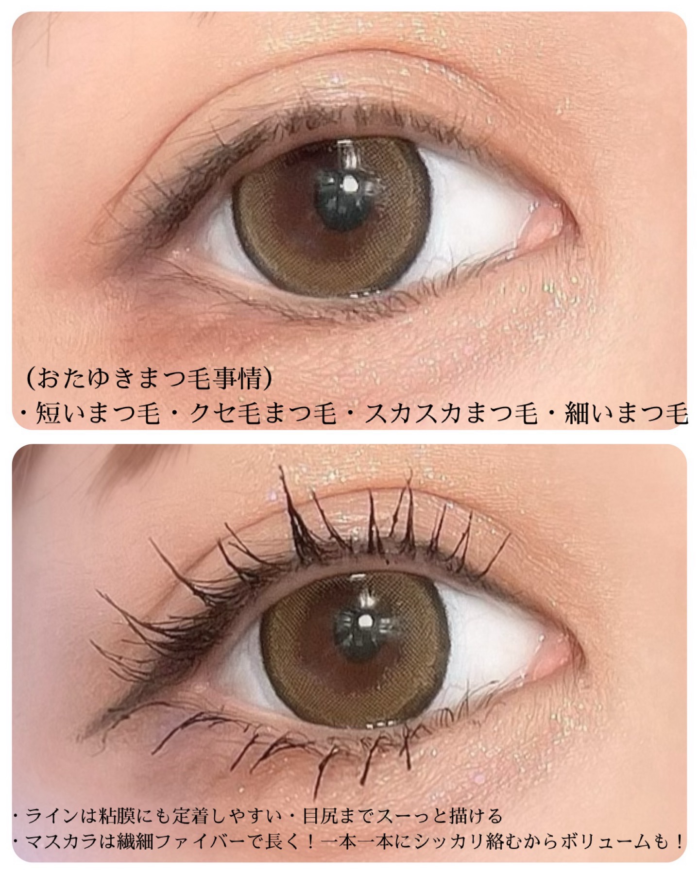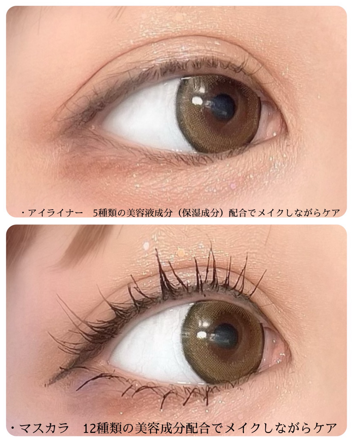 お湯OFFできる甘さ控えめのダークチョコアイライナー。 0.1mmの筆先でウォータープルーフ。ブラックだとはっきりしすぎちゃう!て方におすすめ。 艶やかなダークチョコマスカラ。 お湯OFFできるのにウォータープルーフ。繊維いりでまつ毛が長くなるよ。 ブラウンじゃ物足りないけど、ブラックは強すぎる!!って思うことが多いから、このアイライナーのカラーかなりお気に入り。