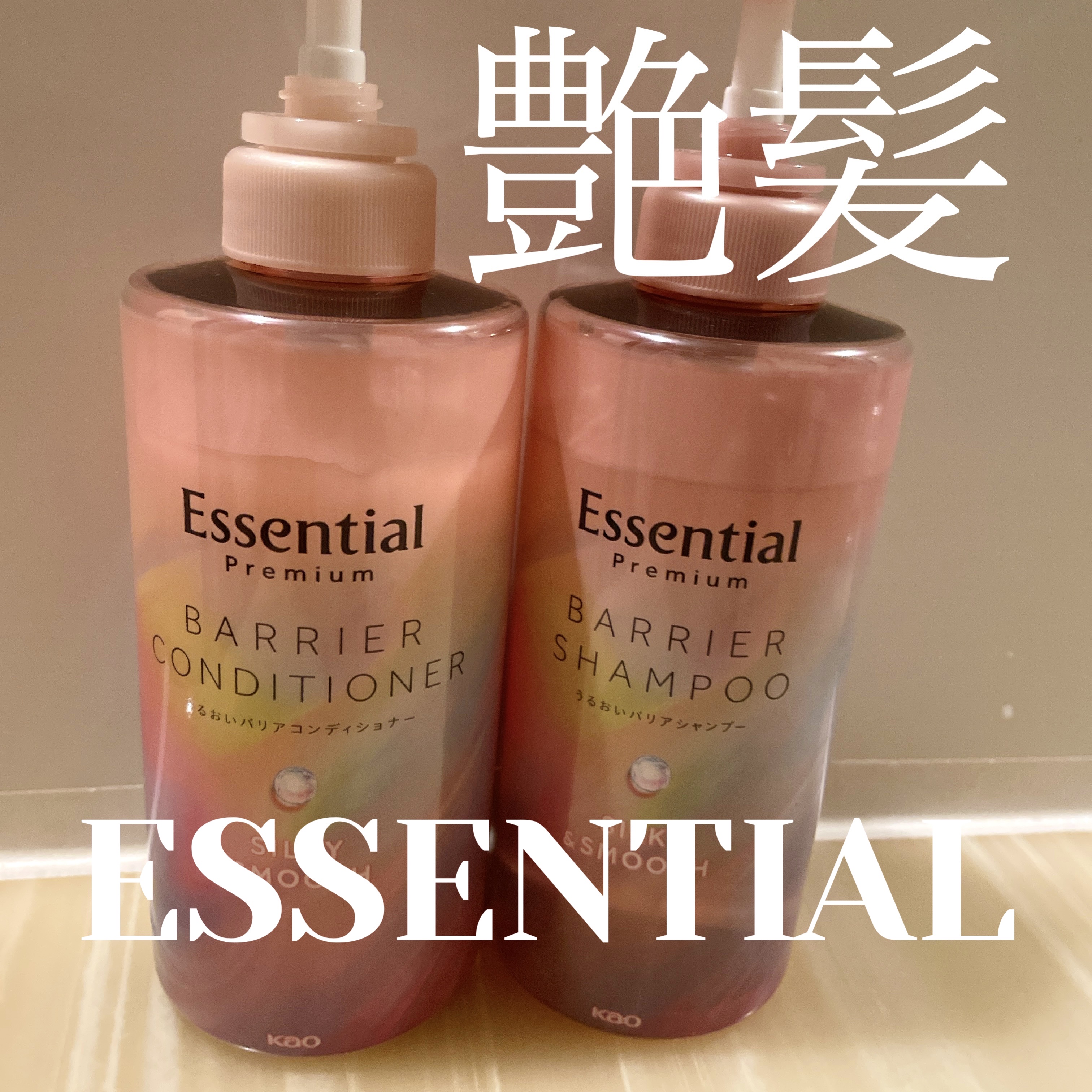 ♡エッセンシャル♡エッセンシャルプレミアムバリアシャンプー・コンディショナーシルキー&スムースシャンプーはふわふわ泡立ちが良く、全体的にピーチの香りに包まれとても幸せな気分になりました🍑コンディショナーをすると指通りがつるんと全体的なまとまり...