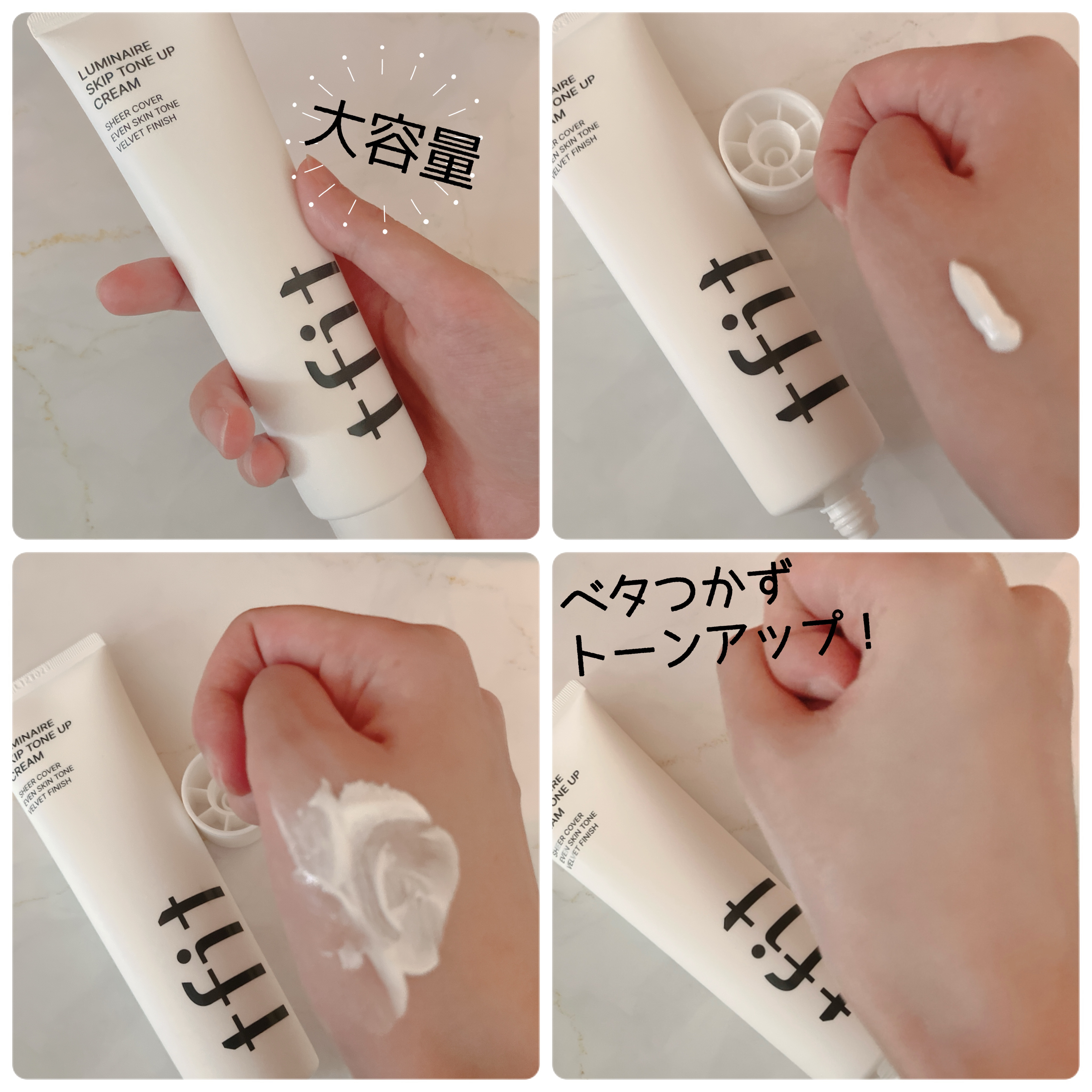 #PR#TFITtfitルミネールスキップトーンアップクリームみずみずしく伸びるテクスチャーで、肌に馴染むと(?????)って頭が混乱するぐらいに、元々から白かった?って、透明感すら感じる仕上がりにびっくり😳100gの大容量なので、首や腕に惜...