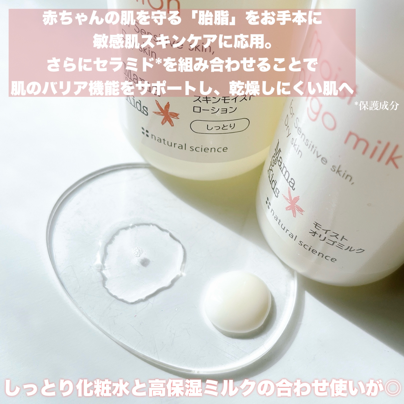 \赤ちゃんから大人まで/すべての敏感肌へうるおいベールで肌を守るナチュラルサイエンスママ&キッズスキンモイストローションしっとりママ&キッズモイストオリゴミルク《商品特徴》♥スキンモイストローションしっとり 荒れやすい乾燥肌のバリア、うるおい...