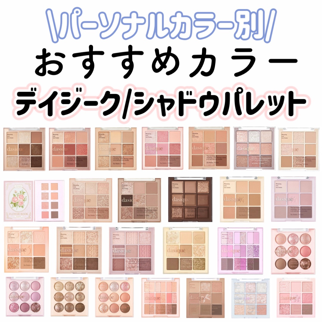 デイジークって他のよりちょっと高いからあこがれのパレットかも🤭まだ1個も持ってないから欲しいんだ! 一応イエベ春secondブルベ夏のイエベ度ブルベ度50%の人なんだけど、ほんとにニュートラルなピンクとかちょっと青みっぽいピンクが好きだから今回のロマンティックブロッサムめっちゃ気になってるの🫶🏻💗 ̖́-