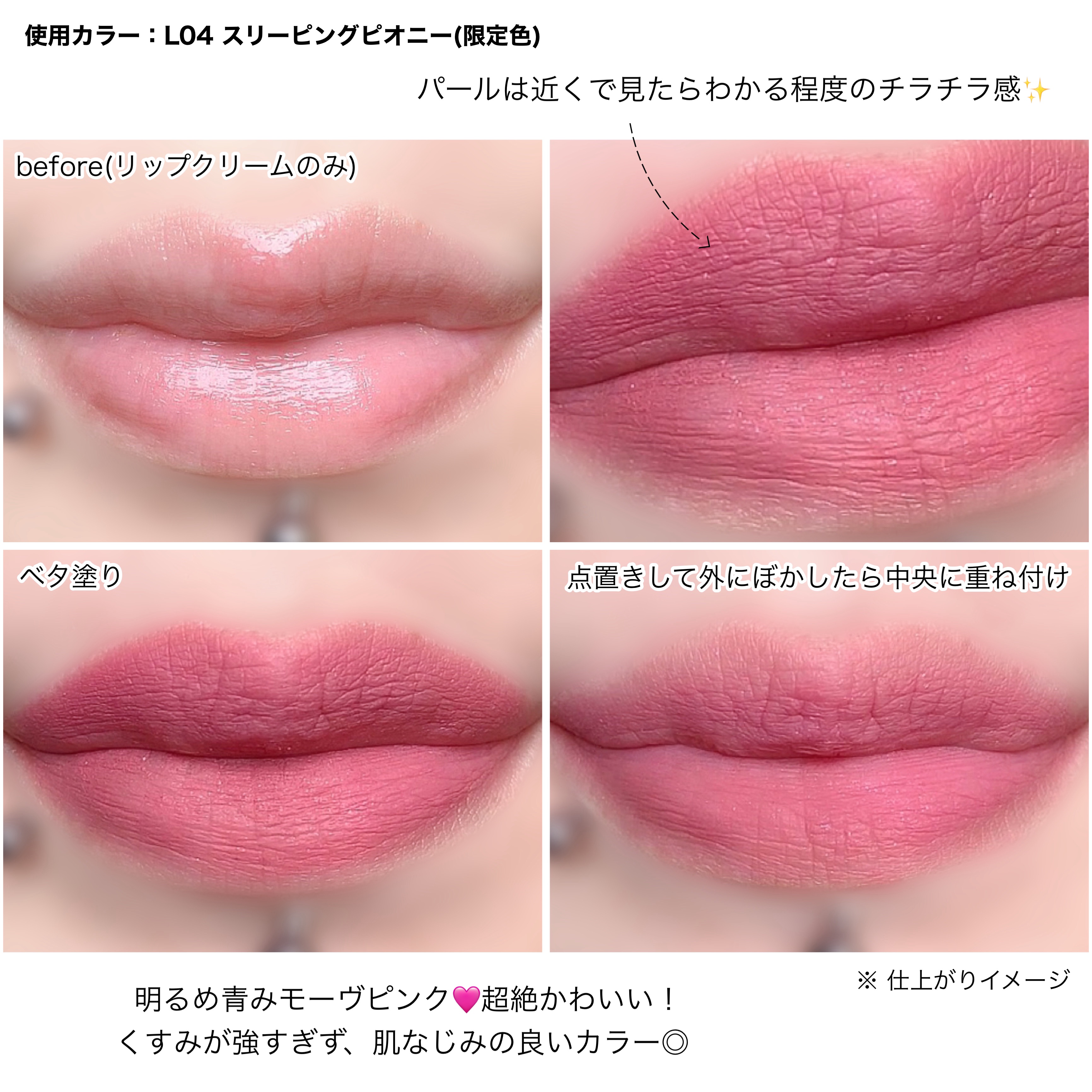 | ソフトマットな質感なので しっとりとしていてパサつきにくい✨ 滑らかなテクスチャーは軽い付け心地です♡ | 詳細を見る | |
