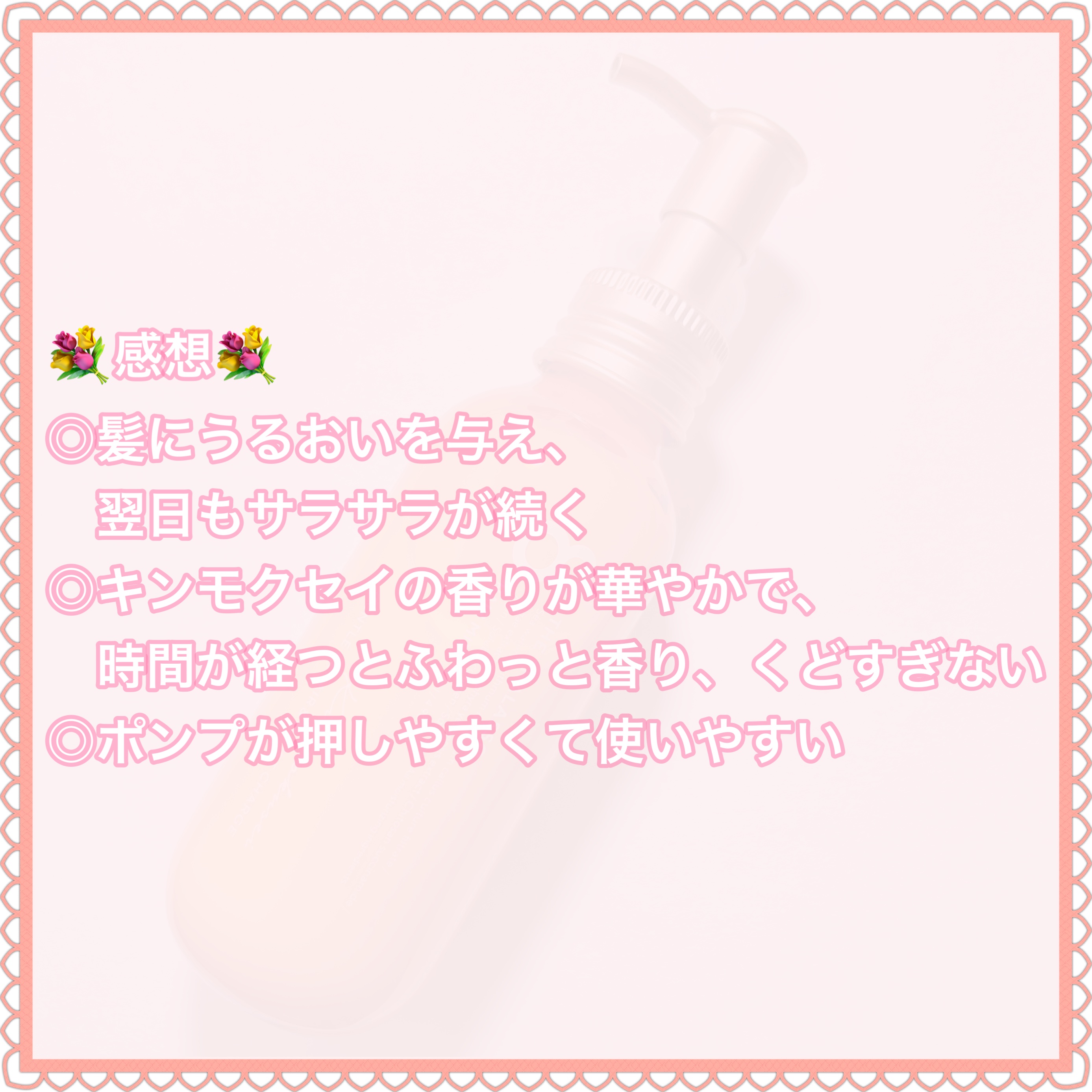 | ヘアケア・スタイリングランキング第96位 | 髪の毛がまとまりやすく、扱いやすくなった感じがして嬉しい🥰 べたつかないさらっと軽やかな使い心地で、手もべたつないから終始快適 | 詳細を見る | |
