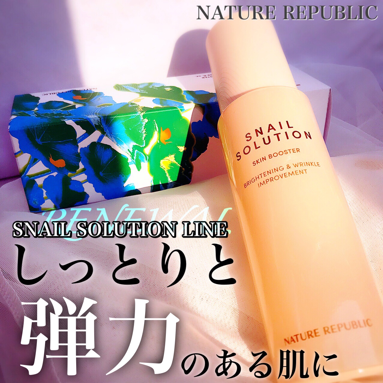 \カタツムリの力👏/ネイチャーリパブリックのSNAILSOLUTIONSKINBOOSTER保湿&保護ブースター成分が入ってるよ!カタツムリの粘液ろ過物80%+パンテノール+3つのシカ成分で栄養チャージ&鎮静効果まで!優しい使用感でよかったよ...