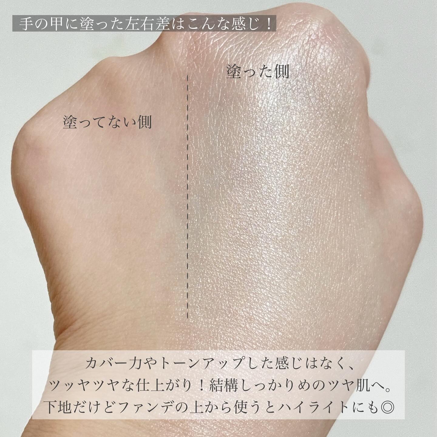 - みずみずしく輝き発光したような艶肌に仕上げる下地。