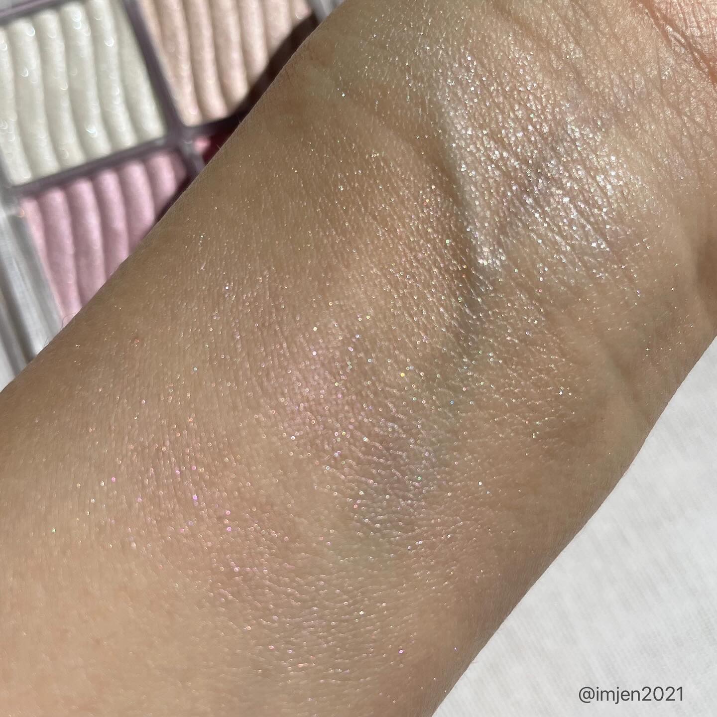 粉質がしっとりしていて 最初触った時びっくりしました。 WAKEMAKEのアイシャドウみたいなテクスチャーで、もっと繊細なイメージかも💭 特に右下はハイライトにしては色が濃いけどアイシャドウとして使ってみたら綺麗でした✨