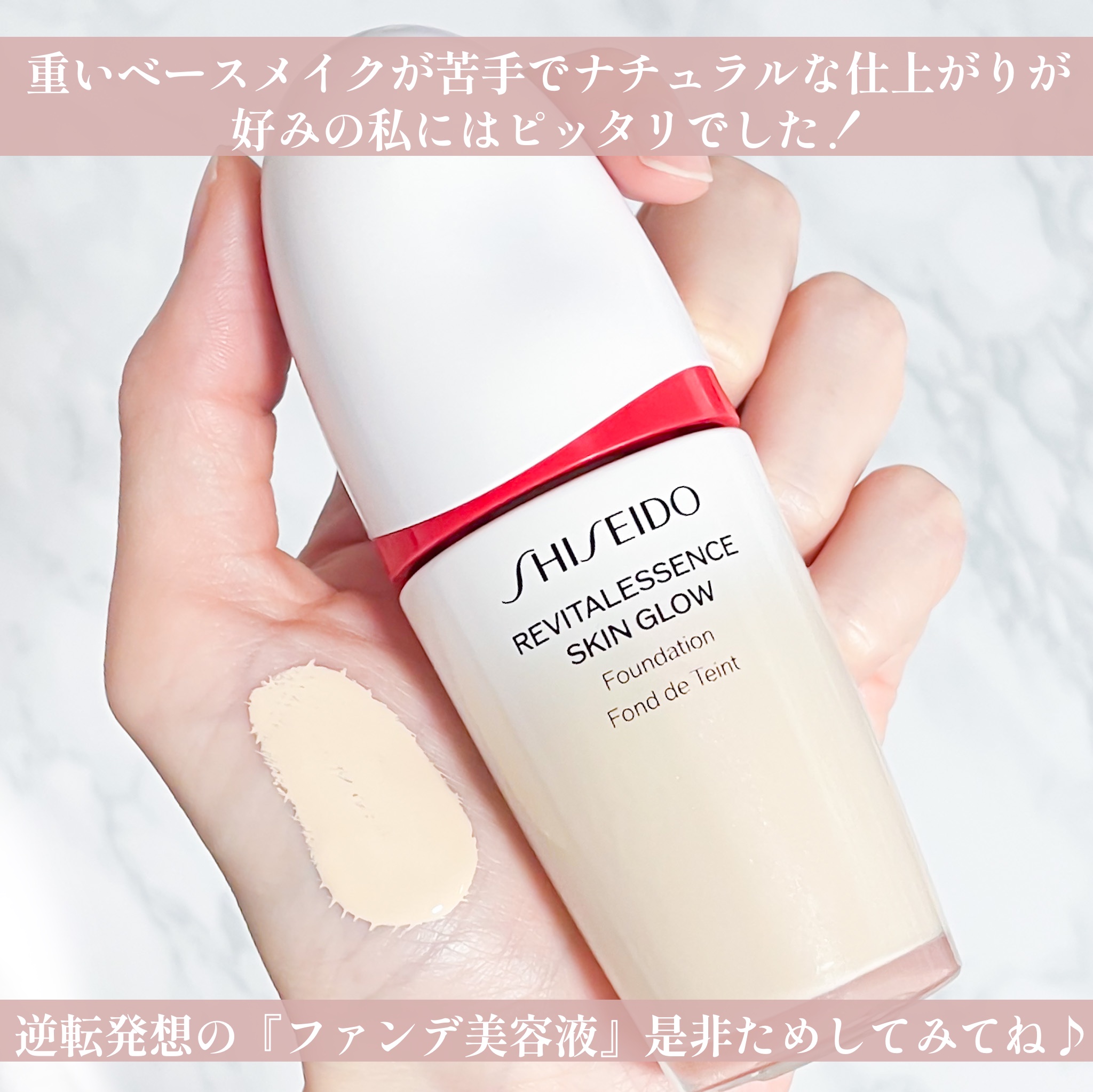 - 1)SHISEIDO エッセンス スキングロウ ファンデーション いよいよ美容液レベルの肌体験へ。 美肌に導く、スキンケアファンデーション。 美容液がファンデーションを包み込む新処方に成功。 まず美容液がはじけ、肌をケアし、メイクしていく。 現れるのは、つややかさ、軽やかさ。 美しい素肌のようで、決して素肌ではかなわない仕上がりがひと塗りで。 ダブルの美容成分ナイアシンアミド*1 ・ケフィア発酵エキスGL*2を配合。 いつしか美しさは、あなたの肌のものになっていく。 メイクでもあり、スキンケアでもあるという新体験を、あなたの肌で。