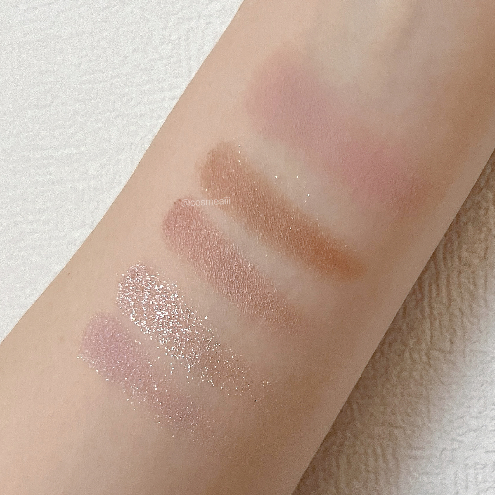 04 ザ・ナラティブ はクールトーンの配色で グレーカラーとかくすんだカラーが多くて 組み合わせは昨日紹介した03より難しいかもしれません。 ヒンスいつも通りの滑らかで発色が良い ただしこのパレットのポイントカラーの ブラックカラーは濃い色なので、キレイに伸ばせないです😢 一番左上はクリームタイプのアイシャドウです 恐らくアイシャドウベースだと思います。 今回の新色03と04 個人的には03の方が気に入りです🌷❤️