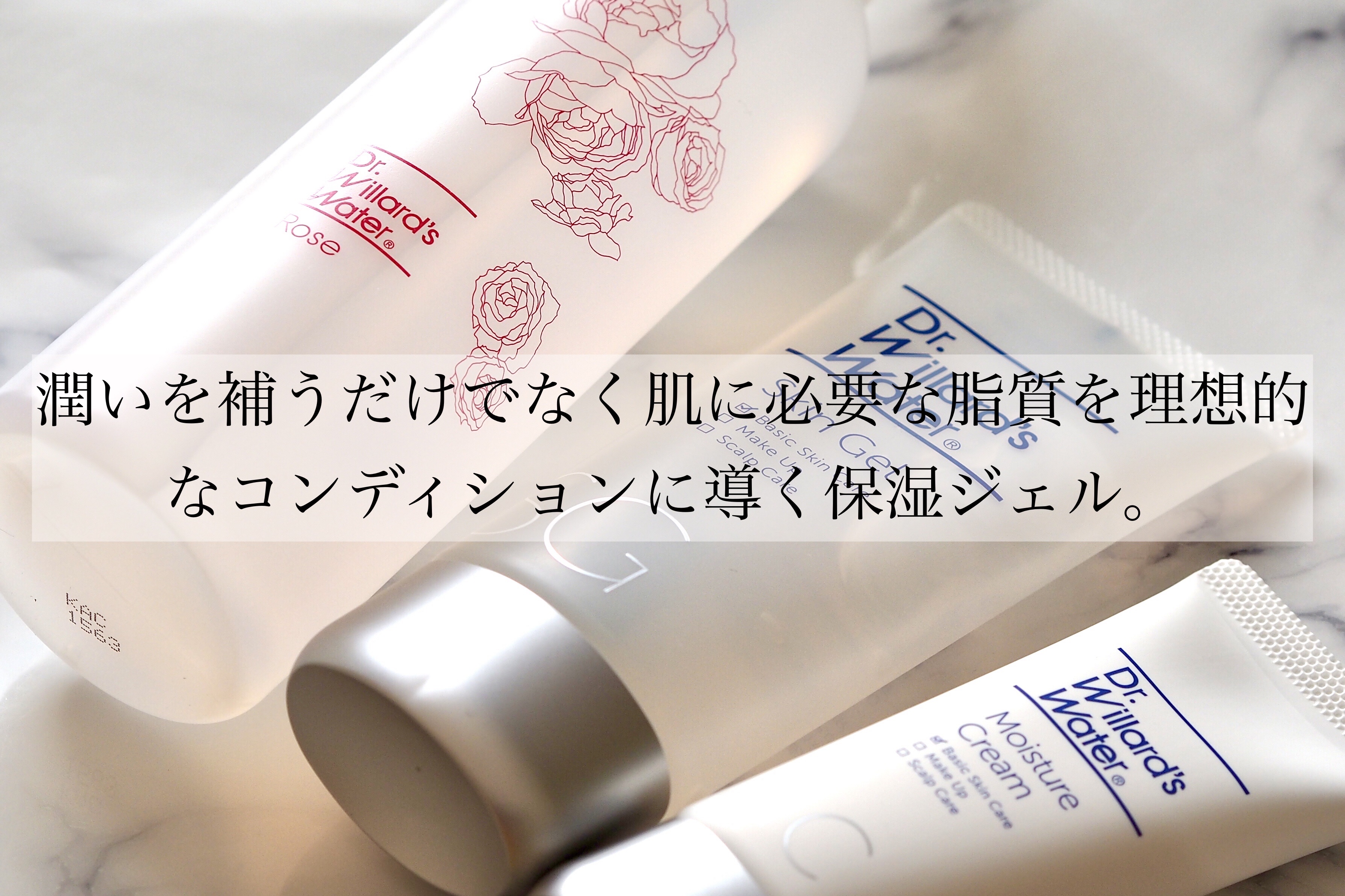 - Dr.ウィラード・ウォーター(保湿)82%配合。 素肌に本来備わっているうるおう力とアクティブに働く環境をサポートするウィラード・ウォーター。長時間、潤いを肌*に留めておくために設計された水のジェル。素肌をやわらかく包み込むような心地よさで、みずみずしさを守ります。 なめらかでやわらかく素肌を包む、クセになる独特のテクスチャー。 *角質層まで