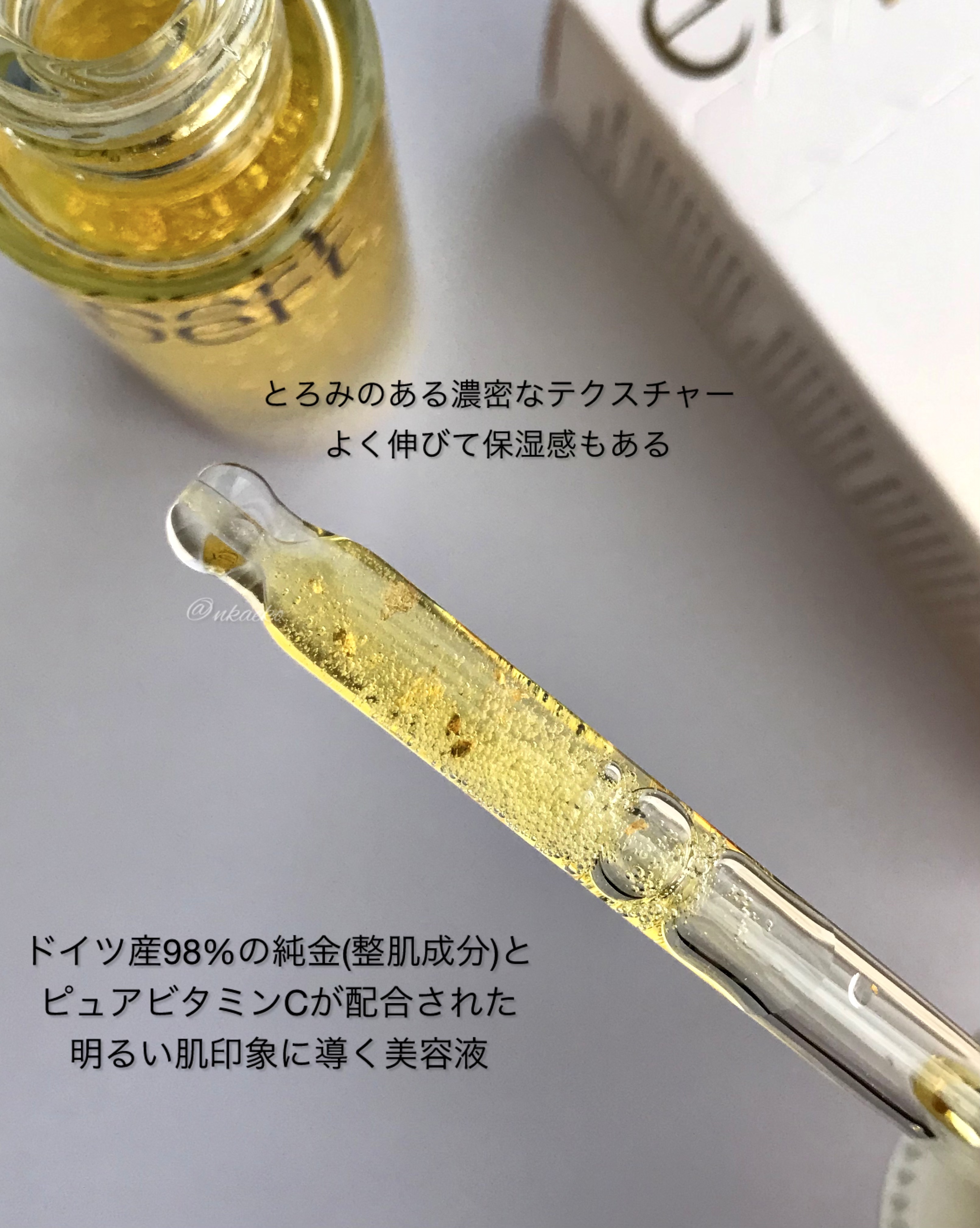 | フローラルの香りのとろっとしたテクスチャー。 美容液の中に金箔が浮いて見えます😳✨ | 詳細を見る | ||