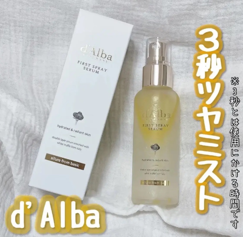 d’alba🤍ダルバ#PRホワイトトリュフファーストスプレーセラム100ml/¥2420-(税込)1本目使い切り!💛このスプレーみんな使ってる?🤤🩵韓国のSNSで「3秒ツヤミスト*」の愛称でバズったミスト!*3秒とは使用にかける時間です毎日の...