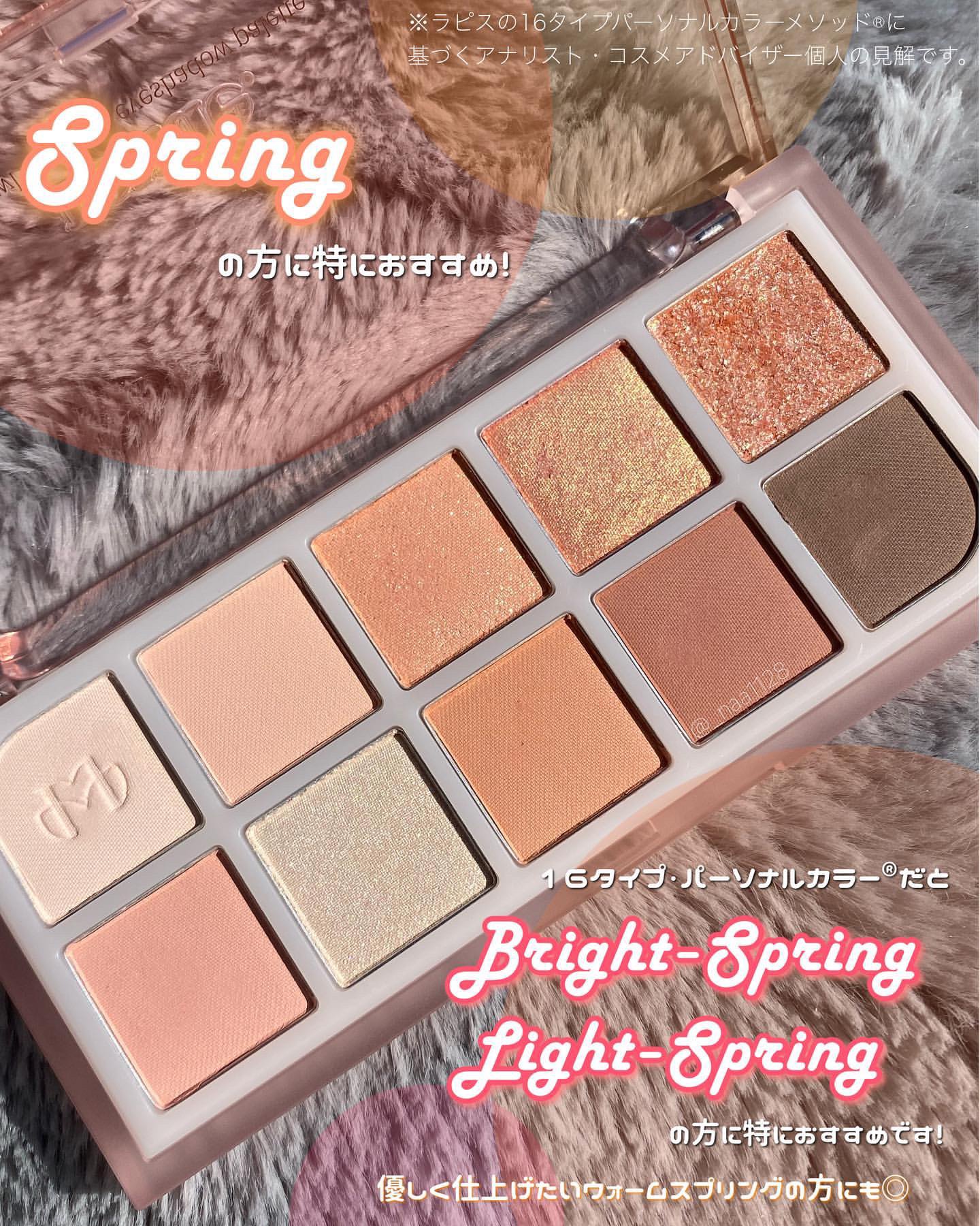 - 10color & 5texteresで、多機能に使用できるアイシャドウパレットです。 陰影ベースからパール感のあるポイントメイクまで、滑らかな塗り心地と高い密着力で美しいグラデーションを作ることができます。 しっとりとした目元を演出しつつ煌めきも与え自分だけのmoodを演出してくれます。