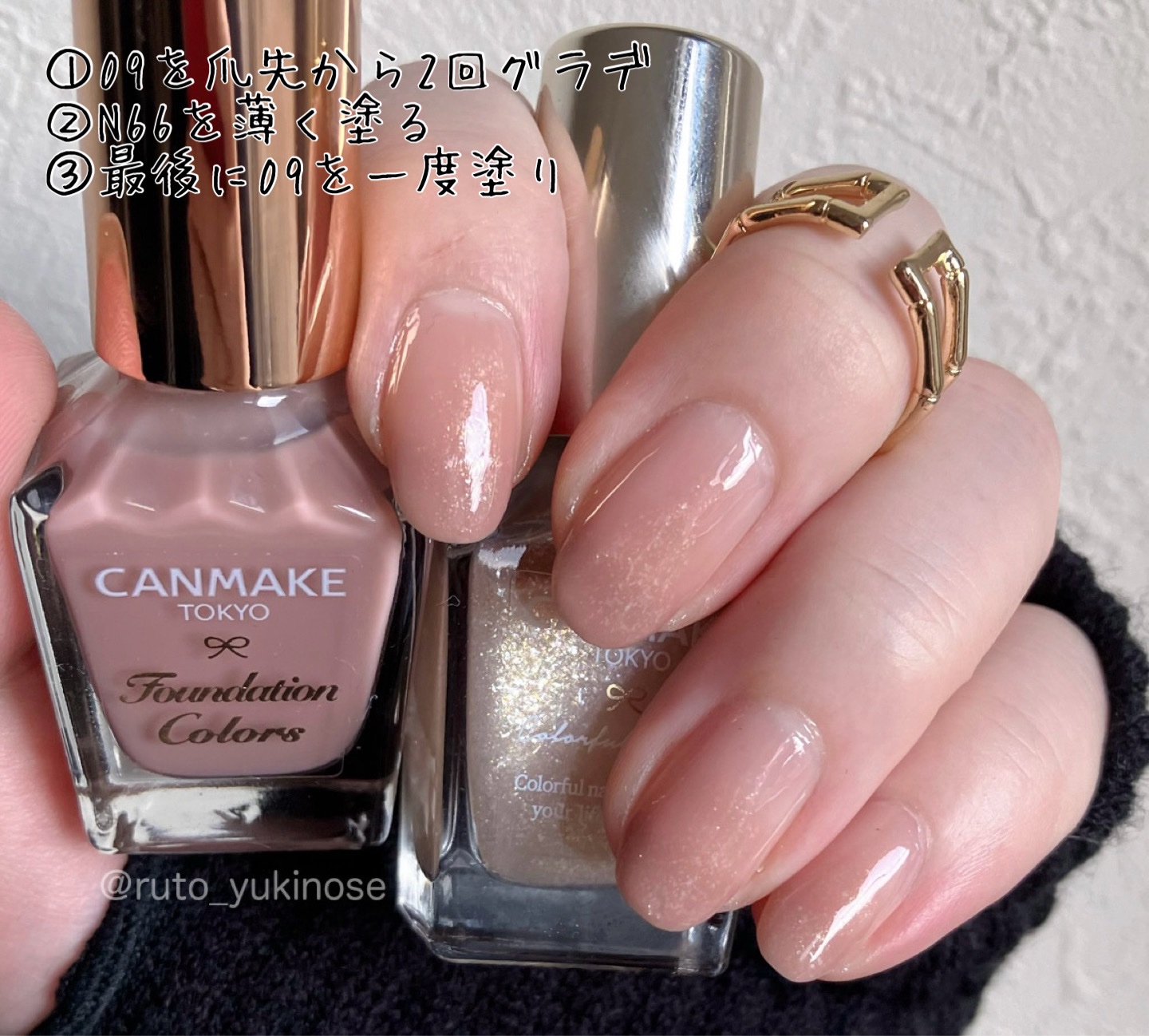 ブルベ夏大優勝なキャンメイク美爪カラーで♡ オフィスにもおすすめグラデネイル💅🏻 キャンメイクのファンデーションカラーズは ベースコート不要で速乾なので忙しい方にもおすすめなシリーズです🫶🏻 キャンメイク ファンデーションカラーズ ¥396 〚09 ダスティピンク〛
