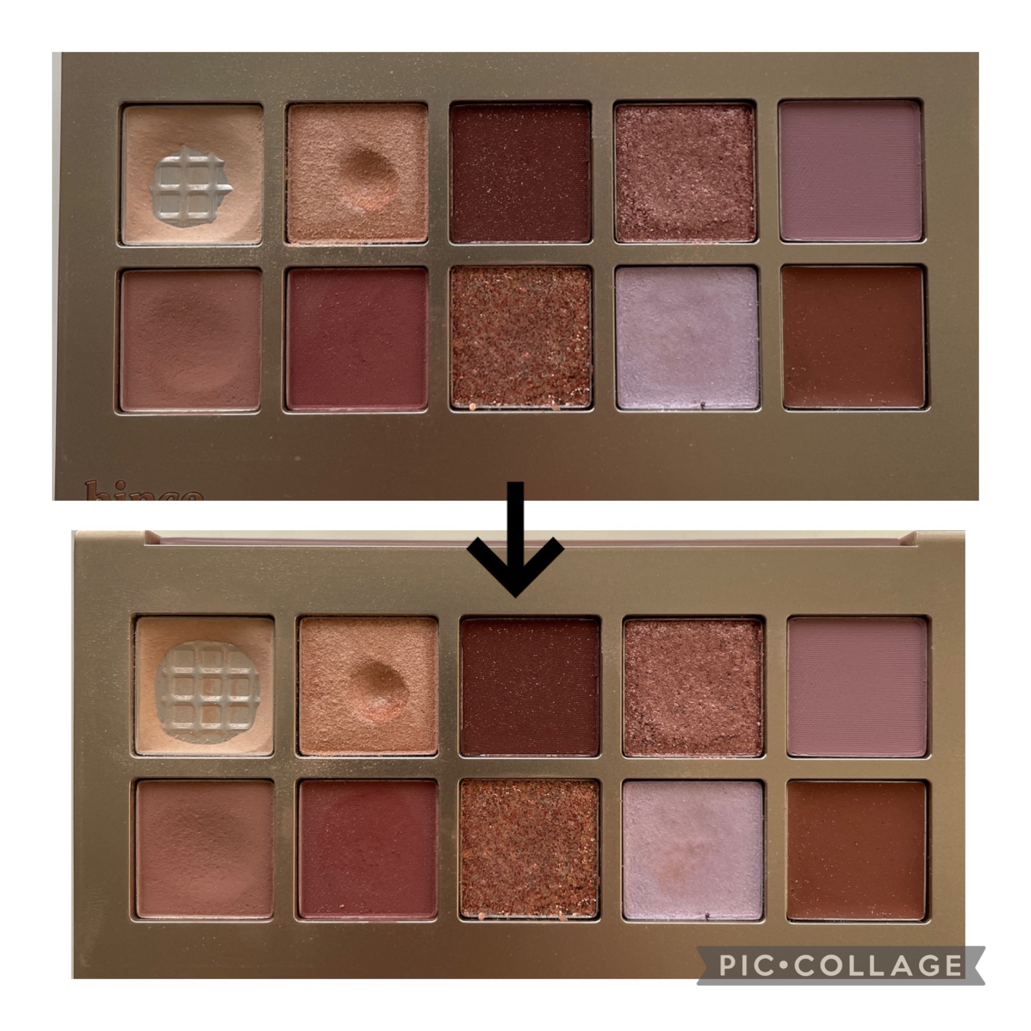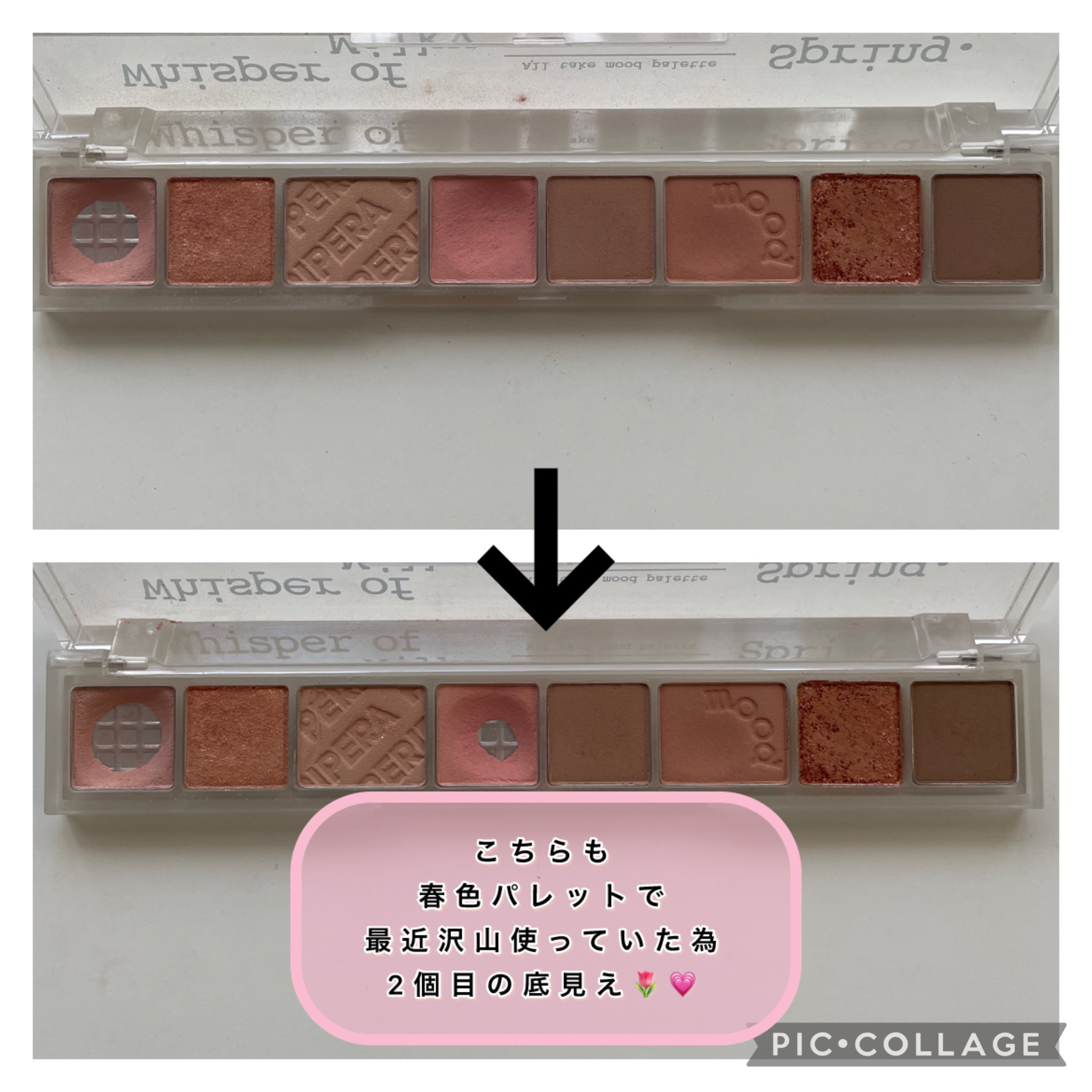私はもうこのベースを使ってからじゃないと、アイシャドウを塗れない!!と思うくらい、メイクに必要な物です🌟 とにかく発色も持ちもムラになりにくさも、かなり違います!!! このアイシャドウは少ししっとりしているので、私は、ブラシではなく指やチップを使ってメイクする事が多いです!! この底見えした部分は、締め色にしては濃いな〜と感じたので、細いブラシにとってアイライン代わりに使ってみたら、影のようなラインが引けて、とっても自然に見えました👌🏻 暗過ぎず、明る過ぎず、本当に丁度良い色味で、下まぶたに付けてもメイク全体が濃く見えない所が1番のお気に入りです💖