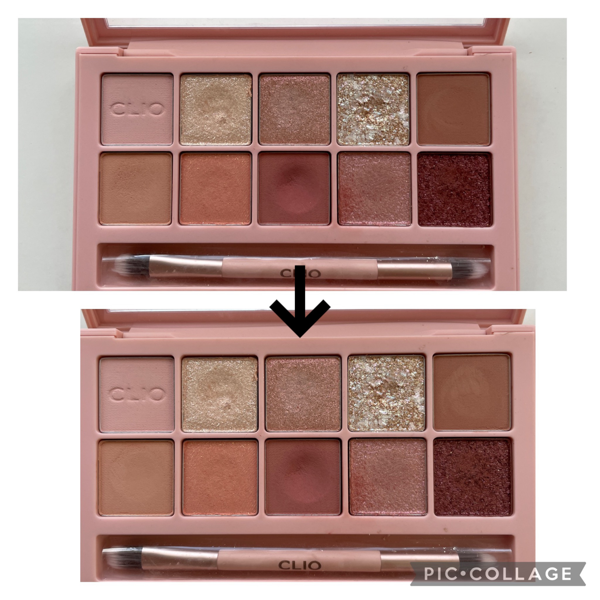 マット、マットパール、ラメ、グリッターとこのアイシャドウを1つ持っていれば、さまざまなメイクが出来て楽しめます🌟 CLIOは本当にラメが最強!! 可愛過ぎるんです🥺💞 01 SIMPLY PINKは色んなピンクが入っていて、03 CORAL TALKはオレンジとピンクの中間のようなカラーでどちらも本当に使いやすかったです!! マットカラーが肌に凄く馴染みます!! オレンジのようなピンクのようなコーラルカラーが本当に可愛いんです🧡 ラメに、青のラメが入っているので存在感のある目元に仕上がります✨ 00ライト&グリッターガーデンは、全色ラメ、グリッターでいつものメイクを華やかにしてくれて、上段1番左のカラーは涙袋に入れると、キラッキラで盛れます!! 03 ROSEBUD GARDENの底見えしているカラーは、少し青みがかっているピンクなのですが、自然に発色してくれるので上まぶた全体に塗っても可愛いですし、下まぶたに塗っても、クマっぽくならないのがお気に入りです!! 08 PEACH DAHLIA GARDENは、ほとんど下段左から2番目のラメを使う事が本当に多かったです!! 細かいけど、しっかりキランキランするラメで見た目よりも白っぽいラメで存在感があります🌟