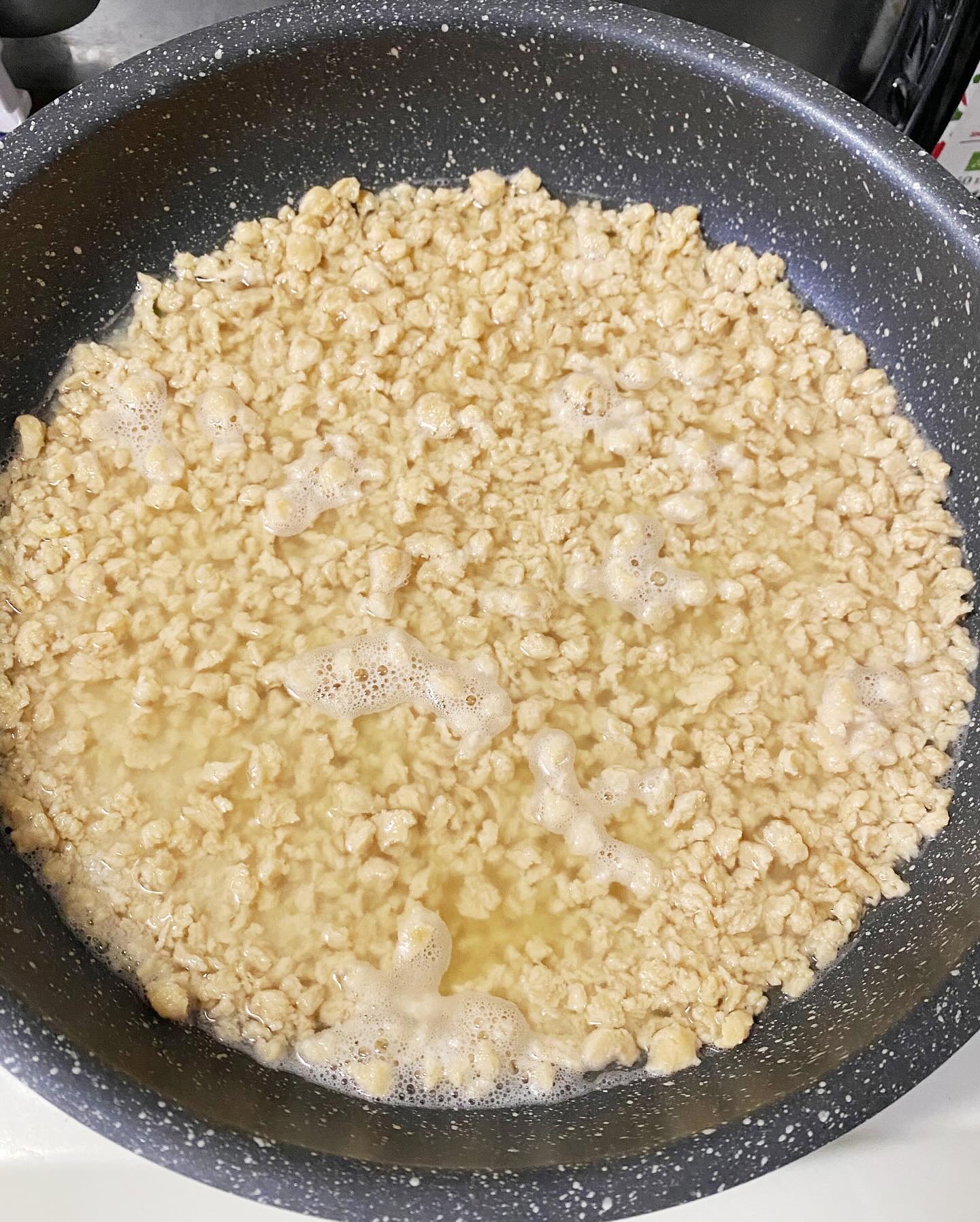 大豆ミート→大豆ミートは、大豆を原料として作られた植物性の代替肉です。大豆の栄養を凝縮し、肉のような食感や味わいを楽しむことができます。また、大豆ミートは植物性のたんぱく質のみなので、コレステロールを全く含んでいないことも特徴です。→今回使っ...