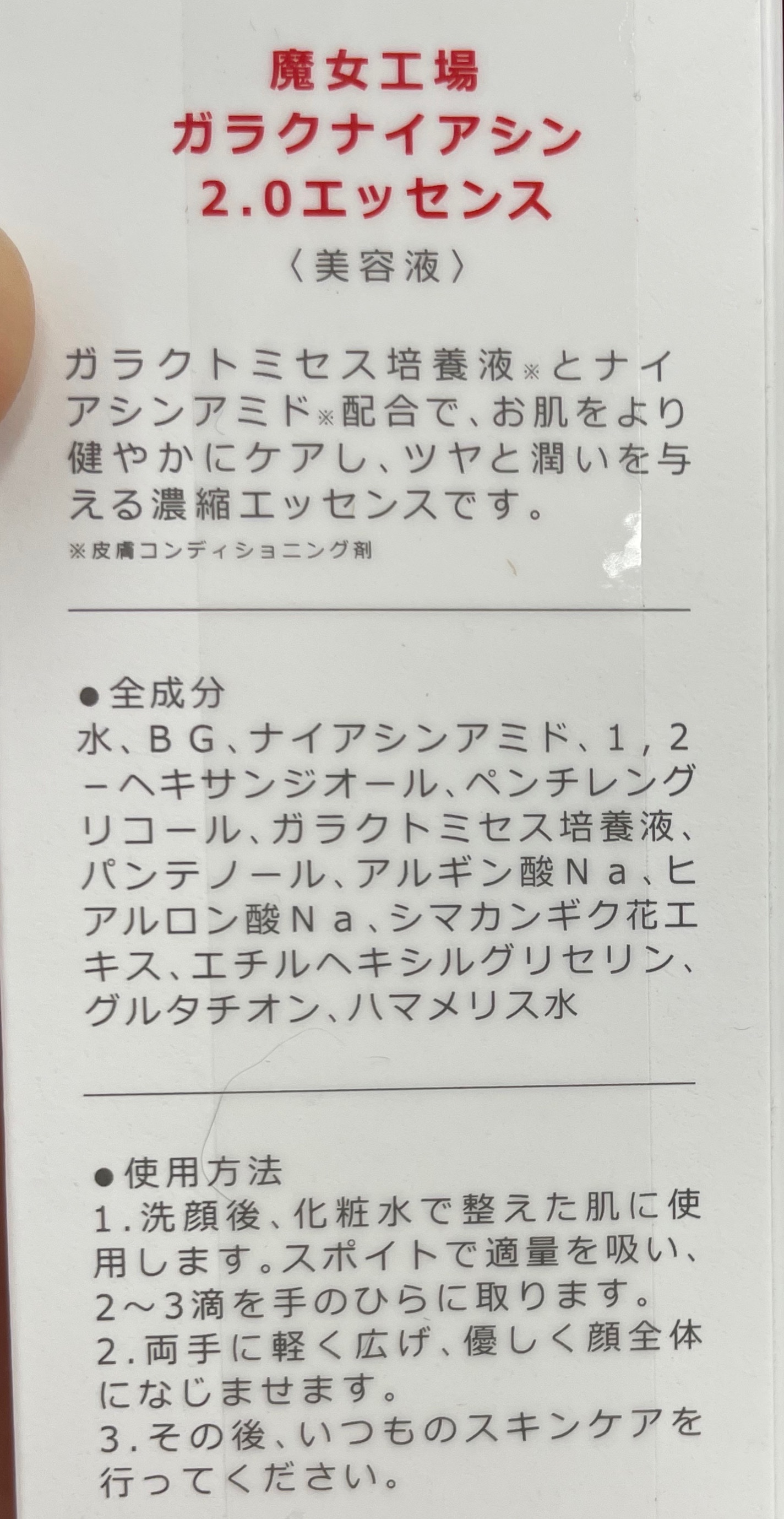 魔女工場ベストセラー美容液🎊 SNSでも良く見かけていたので気になっていました~🌟 高濃縮ガラクトミセスを93.69% 保湿成分ナイアシンアミドを4%配合。 水のようにサラッとしたテクスチャーでさっぱりとした使い心地。