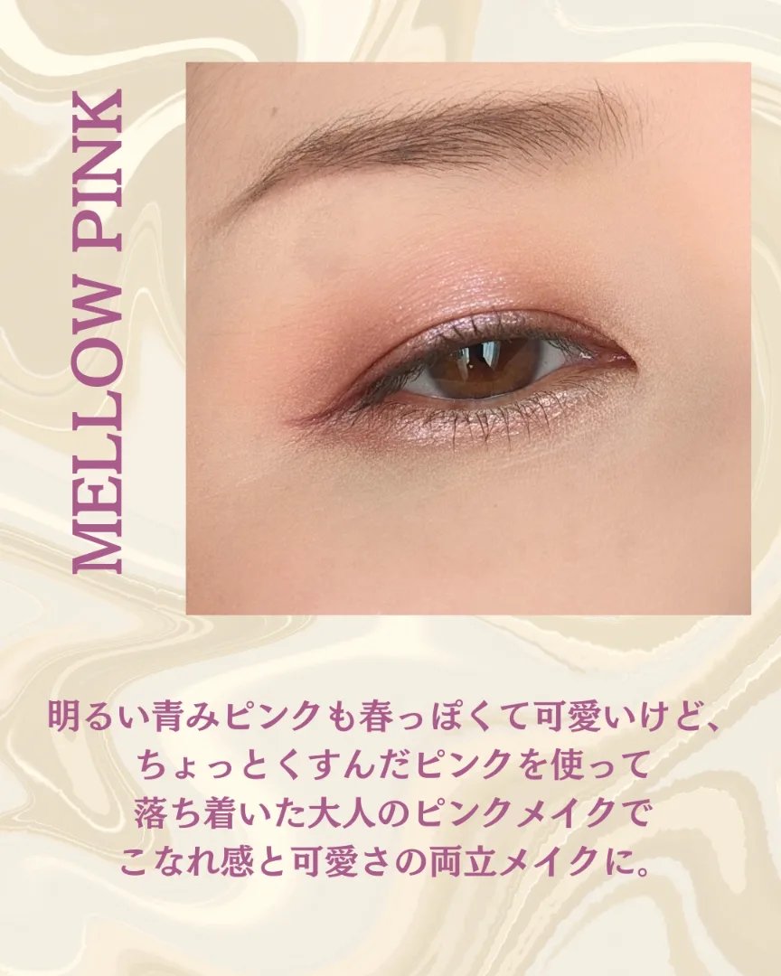 プチプラの単色シャドウ2つで落ち着きや深みもある、大人可愛いプラムカラーメイクをしてみました💁♀️ 指塗りで仕上げられる時短メイクにも◎ 青みがかった深みのあるプラムピンクで、ほんのり血色感のあるカラー♡ ラメなのにパサパサザラザラせず、密着しやすくラメ飛びが少ない◎ 二重幅にのせたプラムカラーをぼかすようにアイホールへ広げて煌めきをプラス✨