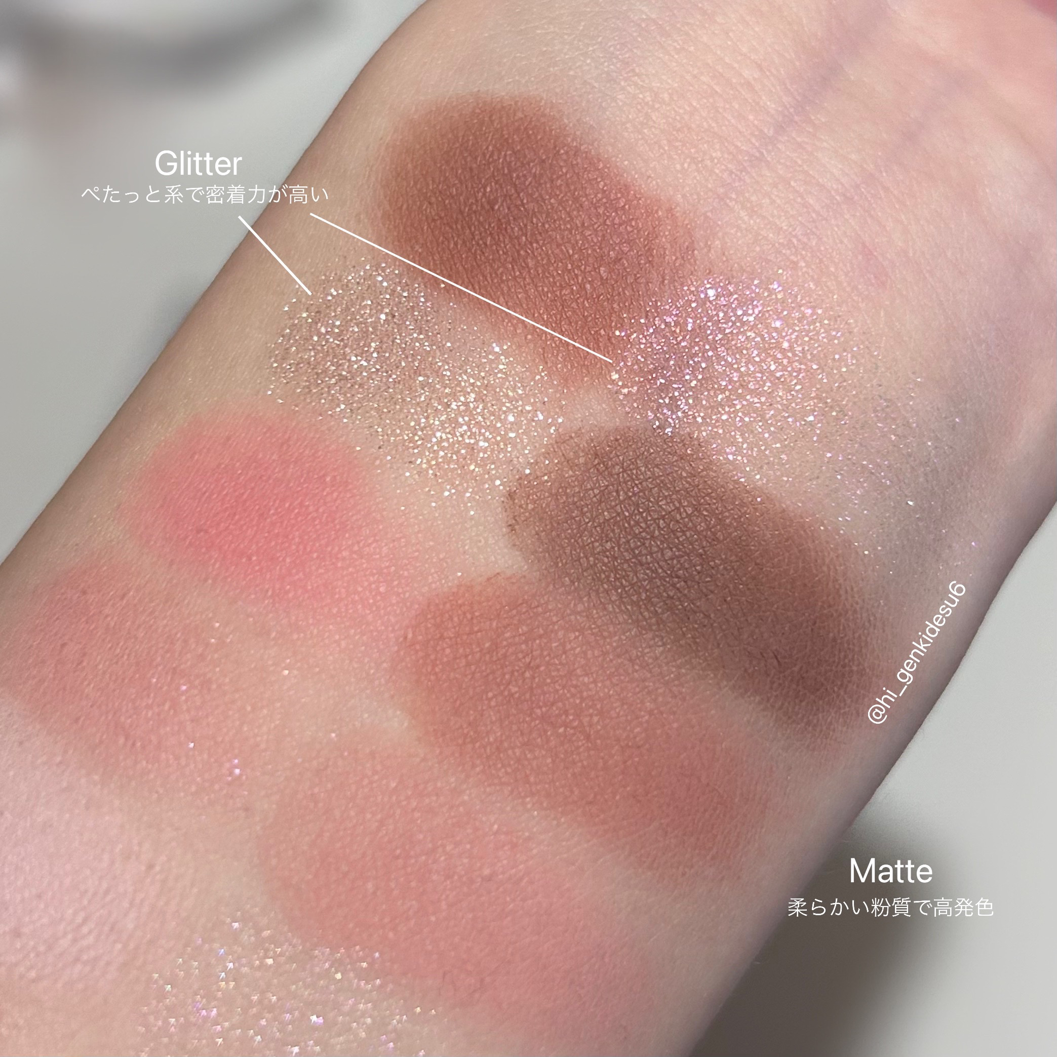40 SUPER PINK (マット / クールピンク) 42 CHEW (グリッター /クールピンク) 45 BLUSH GREY (マット / クールトープグレー) 38 PINK ATTENTION (偏光ピンク) 39 SUGARLESS (偏光ピンクベージュ) 38 PINK ATTENTION / 40 SUPER PINK / 42 CHEW / 45 BLUSH GREY