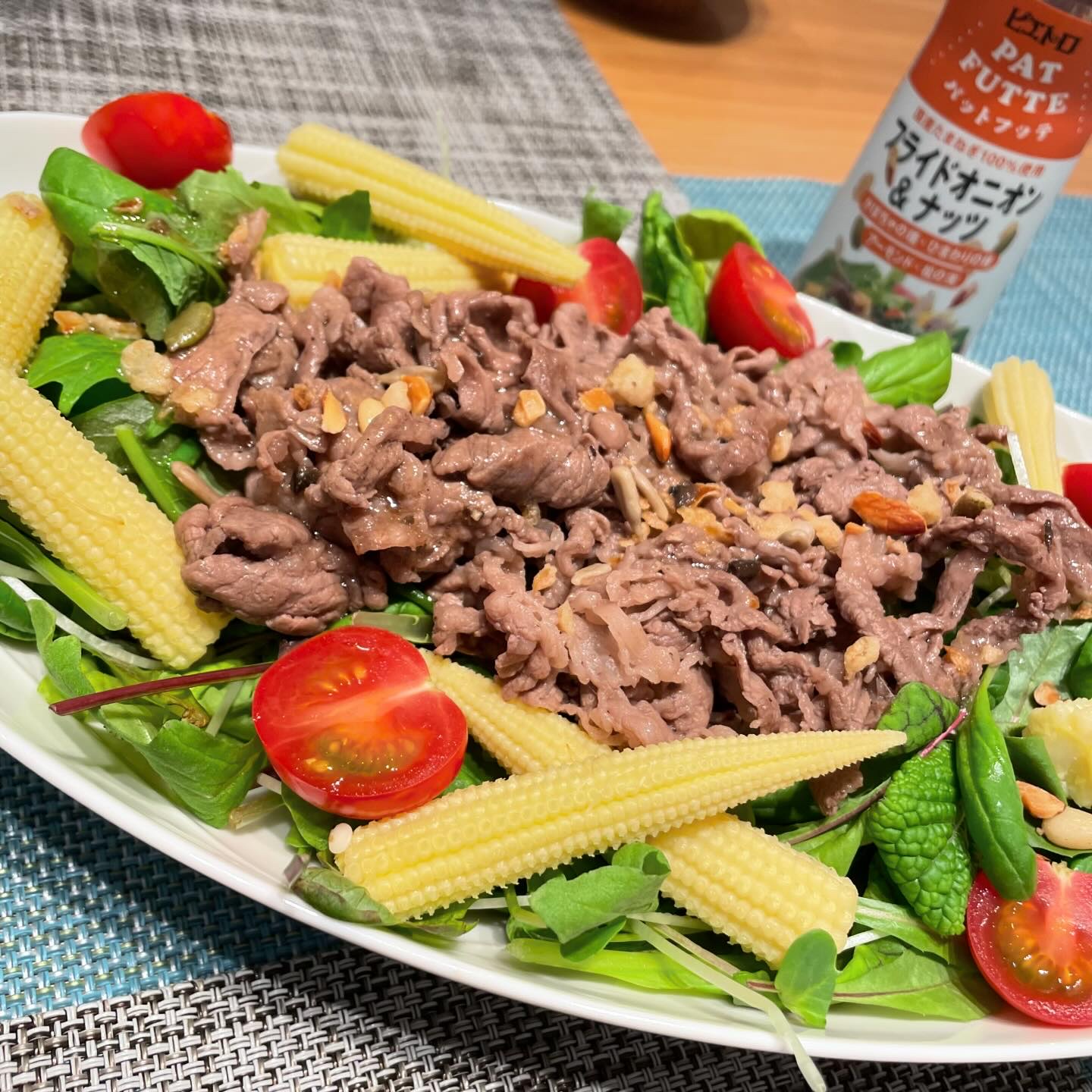 ナッツのザクザクカリカリ食感が最高です✨ フライドオニオンのコクが、ナッツの美味さを更に引き出している感じがしました😆🙌 ワンランク上のサラダをおうちで食べられて満足です❗️