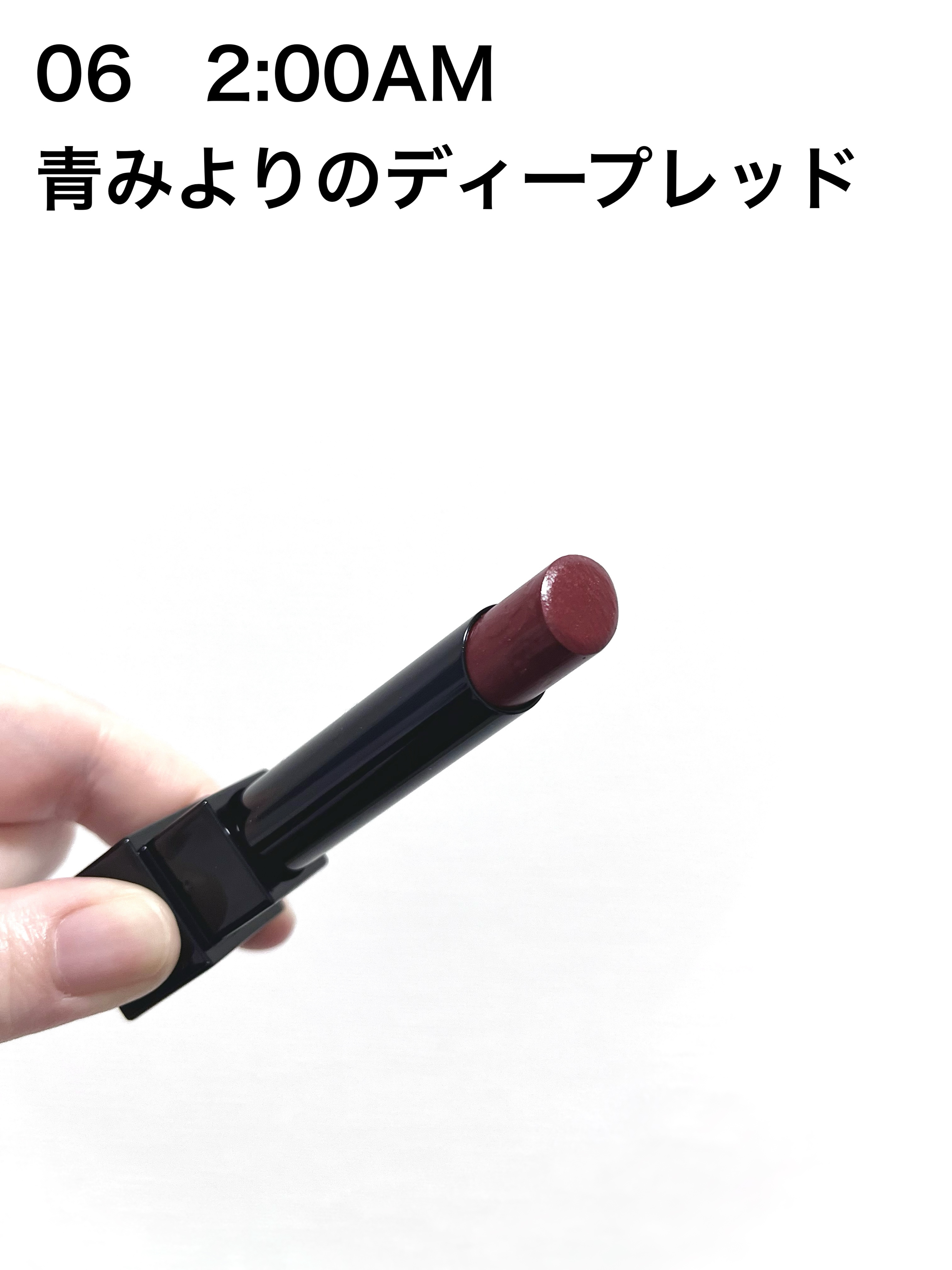 - <01 欲望の塊> テトライソステアリン酸ジペンタエリスリチル、トリ(カプリル酸/カプリン酸)グリセリル、オクチルドデカノール、ラウロイルグルタミン酸ジ(フィトステリル/オクチルドデシル)、ビスアルキル(C16-18)グリセリルウンデシルジメチコン、イソノナン酸イソトリデシル、水添ポリイソブテン、ラウロイルグルタミン酸ジ(オクチルドデシル/フィトステリル/ベヘニル)、パラフィン、合成ワックス、ダイマージリノール酸(フィトステリル/イソステアリル/セチル/ステアリル/ベヘニル)、マイクロクリスタリンワックス、水添マイクロクリスタリンワックス、ヒドロキシステアリン酸エチルヘキシル、トコフェロール、ホホバ種子油、オリーブ果実油、アーモンド油、(エチレン/プロピレン)コポリマー、ポリエチレン、ジメチコン、(+/-)(チタン/酸化チタン)焼結物、マイカ、ラウロイルアスパラギン酸Na、ラウロイルリシン、塩化亜鉛、酸化チタン、酸化鉄、水酸化Al、硫酸Ba、トリイソステアリン酸イソプロピルチタン、酸化スズ、ホウケイ酸(Ca/Al)、合成フルオロフロゴパイト、黄4、黄5、赤104(1)、赤201、赤202 <02 ピンクバナナ> テトライソステアリン酸ジペンタエリスリチル、トリ(カプリル酸/カプリン酸)グリセリル、オクチルドデカノール、ラウロイルグルタミン酸ジ(フィトステリル/オクチルドデシル)、ビスアルキル(C16-18)グリセリルウンデシルジメチコン、イソノナン酸イソトリデシル、水添ポリイソブテン、ラウロイルグルタミン酸ジ(オクチルドデシル/フィトステリル/ベヘニル)、パラフィン、合成ワックス、ダイマージリノール酸(フィトステリル/イソステアリル/セチル/ステアリル/ベヘニル)、マイクロクリスタリンワックス、水添マイクロクリスタリンワックス、ヒドロキシステアリン酸エチルヘキシル、トコフェロール、ホホバ種子油、オリーブ果実油、アーモンド油、(エチレン/プロピレン)コポリマー、ポリエチレン、ジメチコン、(+/-)(チタン/酸化チタン)焼結物、マイカ、ラウロイルアスパラギン酸Na、ラウロイルリシン、塩化亜鉛、酸化チタン、酸化鉄、水酸化Al、硫酸Ba、トリイソステアリン酸イソプロピルチタン、酸化スズ、ホウケイ酸(Ca/Al)、合成フルオロフロゴパイト、黄4、黄5、赤104(1)、赤201、赤202 <03 陽炎> テトライソステアリン酸ジペンタエリスリチル、トリ(カプリル酸/カプリン酸)グリセリル、オクチルドデカノール、ラウロイルグルタミン酸ジ(フィトステリル/オクチルドデシル)、ビスアルキル(C16-18)グリセリルウンデシルジメチコン、イソノナン酸イソトリデシル、水添ポリイソブテン、ラウロイルグルタミン酸ジ(オクチルドデシル/フィトステリル/ベヘニル)、パラフィン、合成ワックス、ダイマージリノール酸(フィトステリル/イソステアリル/セチル/ステアリル/ベヘニル)、マイクロクリスタリンワックス、水添マイクロクリスタリンワックス、ヒドロキシステアリン酸エチルヘキシル、トコフェロール、ホホバ種子油、オリーブ果実油、アーモンド油、(エチレン/プロピレン)コポリマー、ポリエチレン、ジメチコン、(+/-)(チタン/酸化チタン)焼結物、マイカ、ラウロイルアスパラギン酸Na、ラウロイルリシン、塩化亜鉛、酸化チタン、酸化鉄、水酸化Al、硫酸Ba、トリイソステアリン酸イソプロピルチタン、酸化スズ、ホウケイ酸(Ca/Al)、合成フルオロフロゴパイト、黄4、黄5、赤104(1)、赤201、赤202 <04 パンプキンワイン> テトライソステアリン酸ジペンタエリスリチル、トリ(カプリル酸/カプリン酸)グリセリル、オクチルドデカノール、ラウロイルグルタミン酸ジ(フィトステリル/オクチルドデシル)、ビスアルキル(C16-18)グリセリルウンデシルジメチコン、イソノナン酸イソトリデシル、水添ポリイソブテン、ラウロイルグルタミン酸ジ(オクチルドデシル/フィトステリル/ベヘニル)、パラフィン、合成ワックス、ダイマージリノール酸(フィトステリル/イソステアリル/セチル/ステアリル/ベヘニル)、マイクロクリスタリンワックス、水添マイクロクリスタリンワックス、ヒドロキシステアリン酸エチルヘキシル、トコフェロール、ホホバ種子油、オリーブ果実油、アーモンド油、(エチレン/プロピレン)コポリマー、ポリエチレン、ジメチコン、(+/-)(チタン/酸化チタン)焼結物、マイカ、ラウロイルアスパラギン酸Na、ラウロイルリシン、塩化亜鉛、酸化チタン、酸化鉄、水酸化Al、硫酸Ba、トリイソステアリン酸イソプロピルチタン、酸化スズ、ホウケイ酸(Ca/Al)、合成フルオロフロゴパイト、黄4、黄5、赤104(1)、赤201、赤202 <05 ダークフィグ> テトライソステアリン酸ジペンタエリスリチル、トリ(カプリル酸/カプリン酸)グリセリル、オクチルドデカノール、ラウロイルグルタミン酸ジ(フィトステリル/オクチルドデシル)、ビスアルキル(C16-18)グリセリルウンデシルジメチコン、イソノナン酸イソトリデシル、水添ポリイソブテン、ラウロイルグルタミン酸ジ(オクチルドデシル/フィトステリル/ベヘニル)、