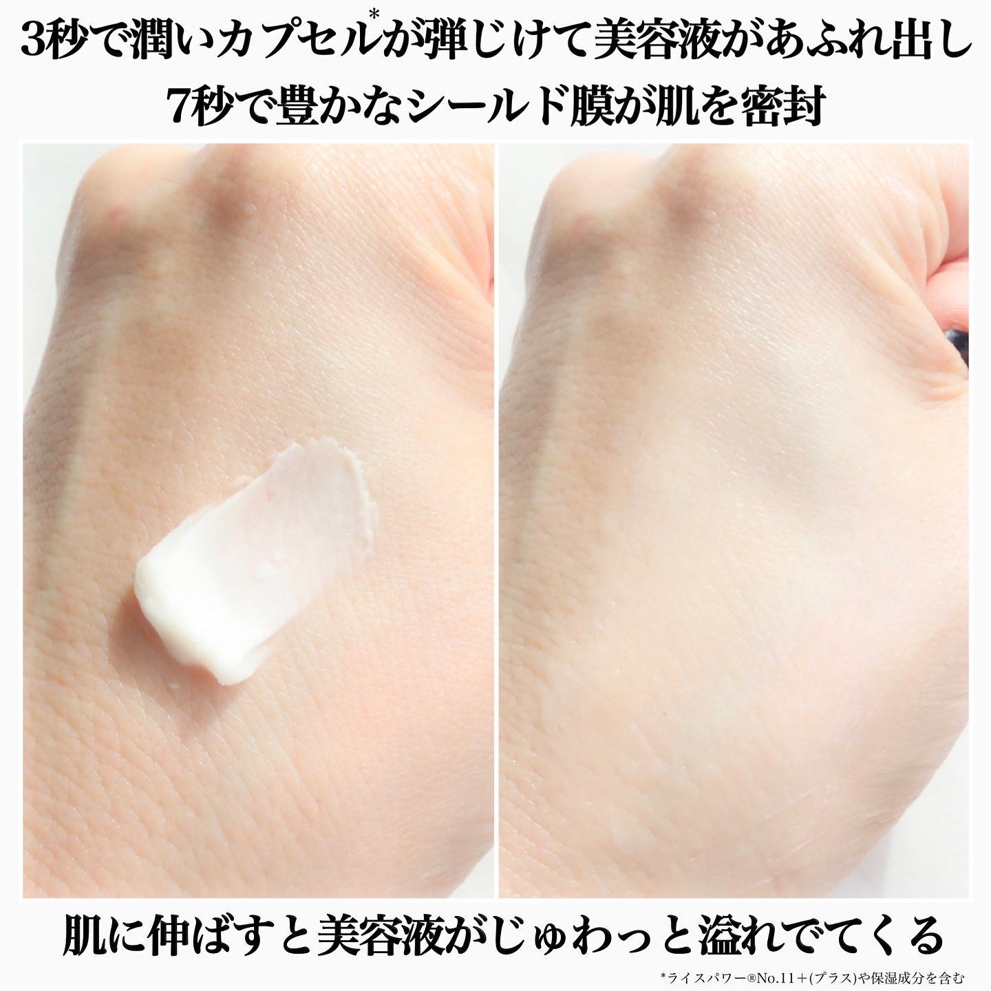 - <40g> 有効成分 ライスパワーNo.11+ その他の成分 精製水、濃グリセリン、1,3-ブチレングリコール、メチルポリシロキサン、トリ2-エチルヘキサン酸グリセリル、高融点パラフィン(2)、PEG-9 ポリジメチルシロキシエチル ジメチコン、d-δ-トコフェロール、アボカド油、ホホバ油、海藻エキス(1)、エデト酸二ナトリウム、カルナウバロウ、コメヌカロウ、シクロヘキサンジカルボン酸ビスエトキシジグリコール、シロキクラゲ多糖体、スクワラン、塩化ナトリウム、高融点マイクロクリスタリンワックス、フェノキシエタノール、メチルパラベン、香料、カラメル <7g> ライスパワーNo.11+、精製水、濃グリセリン、1,3-ブチレングリコール、メチルポリシロキサン、トリ2-エチルヘキサン酸グリセリル、高融点パラフィン(2)、PEG-9 ポリジメチルシロキシエチル ジメチコン、d-δ-トコフェロール、アボカド油、ホホバ油、海藻エキス(1)、エデト酸二ナトリウム、カルナウバロウ、コメヌカロウ、シクロヘキサンジカルボン酸ビスエトキシジグリコール、シロキクラゲ多糖体、スクワラン、塩化ナトリウム、高融点マイクロクリスタリンワックス、フェノキシエタノール、メチルパラベン、香料、カラメル <限定6g> 有効成分 ライスパワーNo.11+ その他の成分 精製水、濃グリセリン、1,3-ブチレングリコール、メチルポリシロキサン、トリ2-エチルヘキサン酸グリセリル、高融点パラフィン(2)、PEG-9 ポリジメチルシロキシエチル ジメチコン、d-δ-トコフェロール、アボカド油、ホホバ油、海藻エキス(1)、エデト酸二ナトリウム、カルナウバロウ、コメヌカロウ、シクロヘキサンジカルボン酸ビスエトキシジグリコール、シロキクラゲ多糖体、スクワラン、塩化ナトリウム、高融点マイクロクリスタリンワックス、フェノキシエタノール、メチルパラベン、香料、カラメル