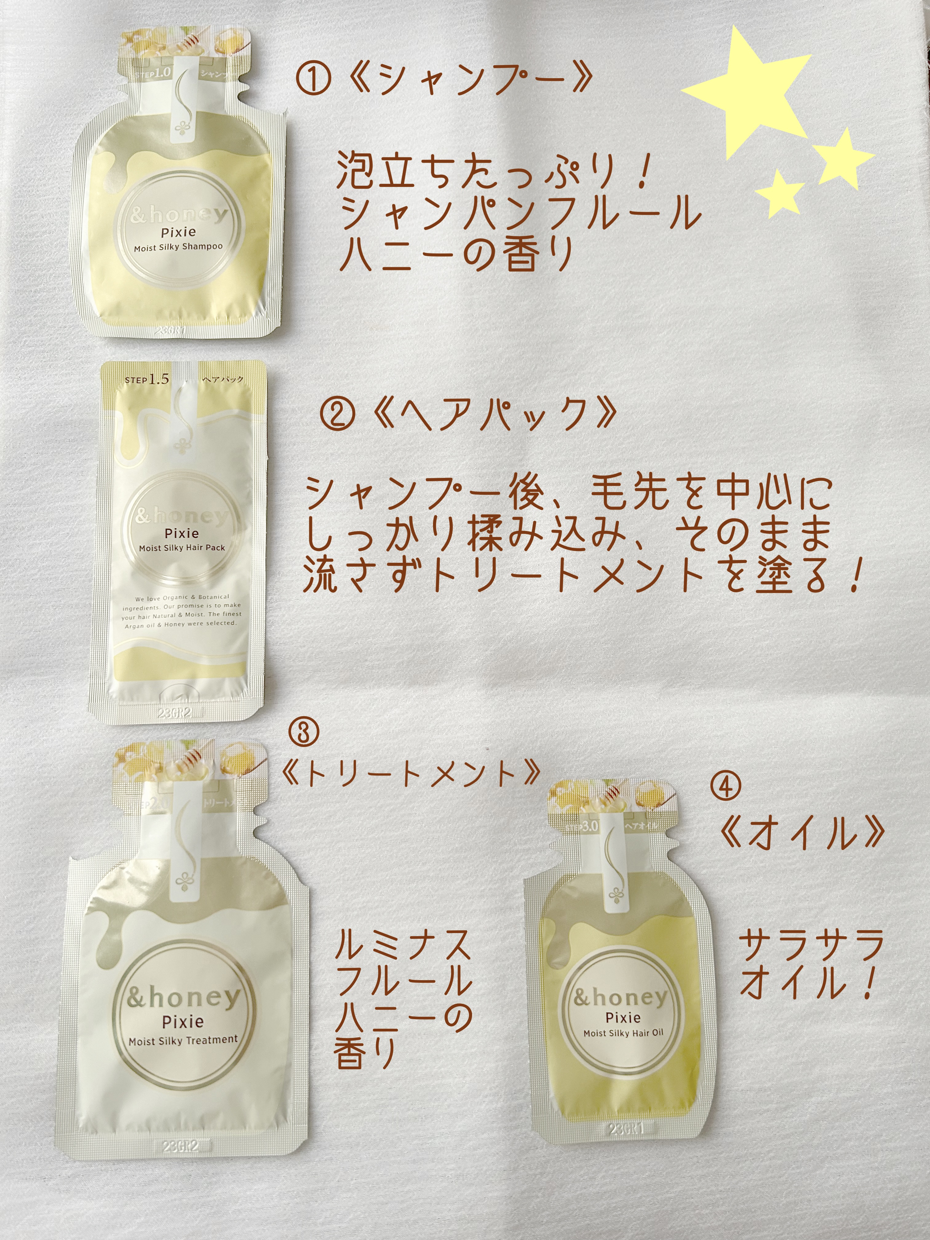 #PR #アンドハニー #提供品※2024年使用品ヘアオイル、シャントリサシェ・商品名&honeyPixie(ピクシー) モイストシルキーヘアオイル3.0 100ml 4連サシェ・値段定価1540円(ヘアオイル)・評価★★★☆☆(ヘアオイル)...