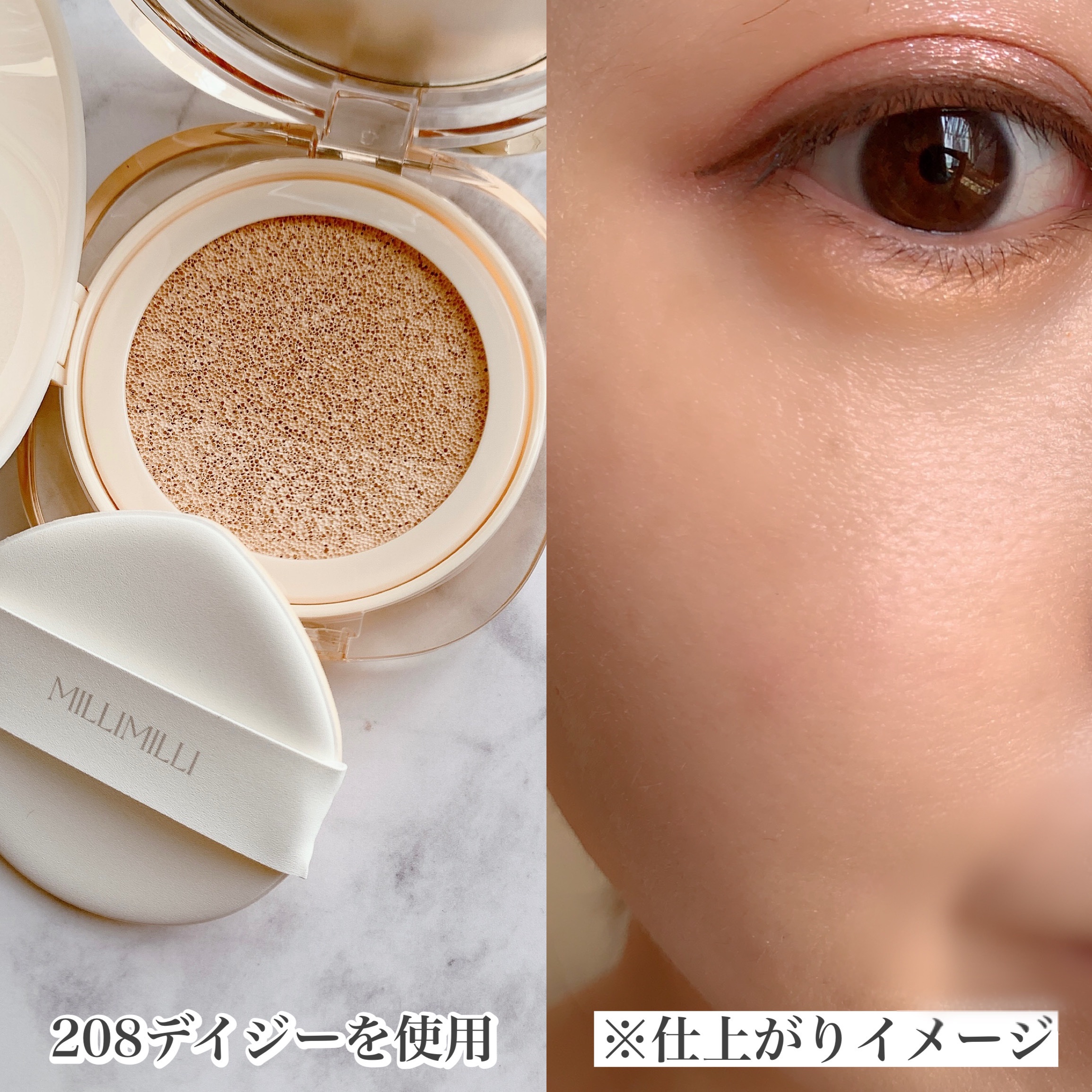 🧁🩷MILLIMILLIツートンクッション202ロージーツートンで立体小顔がつくれて、トーンアップ&肌色補正が叶うクッションファンデ✨️(メイクアップ効果による)メインカラー:全体的な肌トーンを均一に整えるデュアルカラー:額・鼻すじ、...