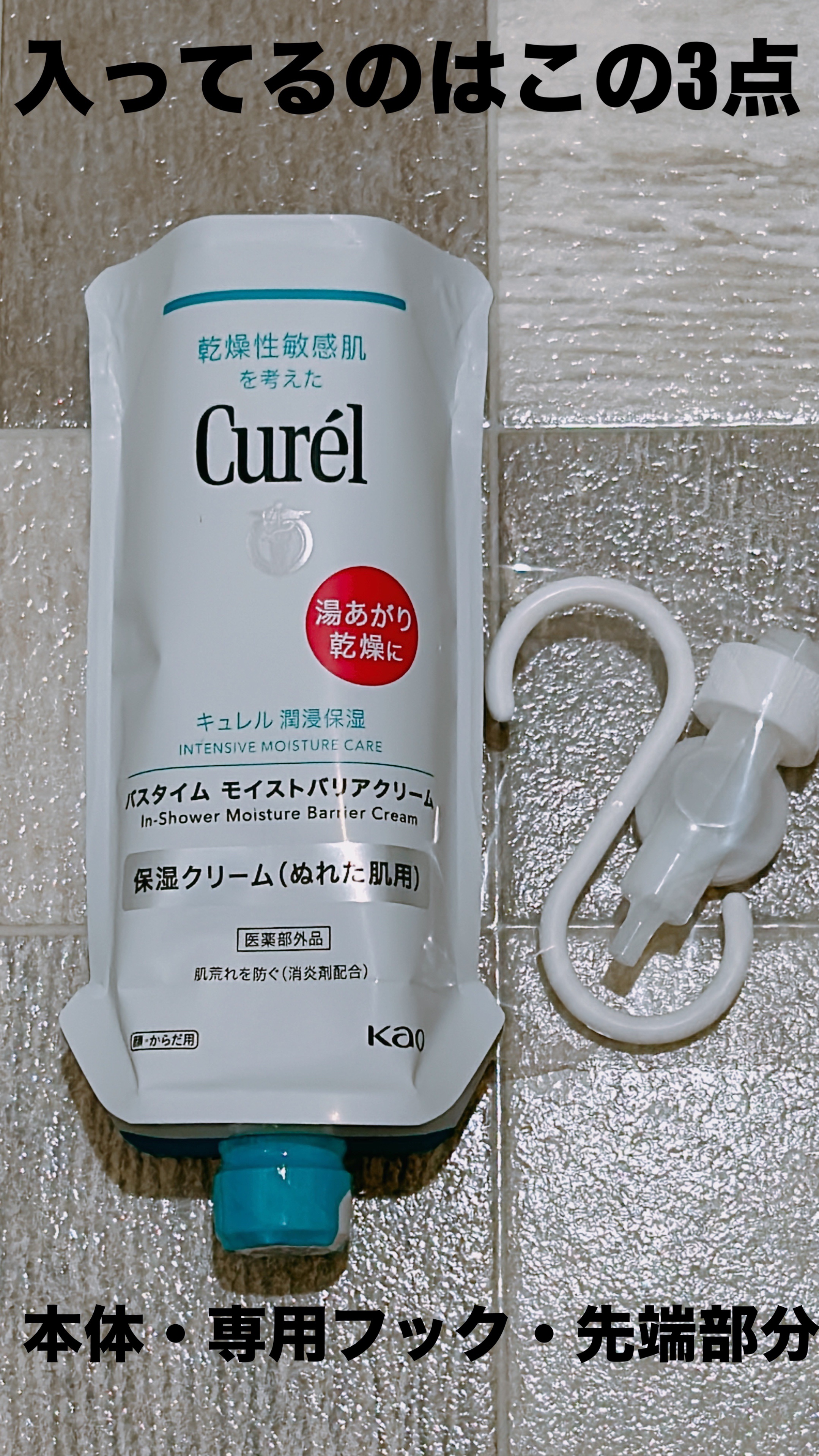 - 【敏感肌用】 湯あがり乾燥する前に、ぬれた肌に使うクリーム。潤いバリアラッピング。セラミド機能成分*(潤い成分)を含んだ潤いバリア膜が、肌がぬれたまま潤いを密封。タオルでふいても、保湿成分がしっかりと肌に残るので、全身膜で守られているような潤い肌に。 ●消炎剤配合(有効成分)配合。肌荒れを防ぐ。 ●長時間潤ったまま、健やかな肌に保ちます。(医薬部外品) *ヘキサデシロキシPGヒドロキシエチルヘキサデカナミド 商品に関するお問い合わせ 受付時間9:00~17:00(土曜・日曜・祝日除く) *製品の誤飲・誤食など緊急の場合は、受付時間外でもお電話ください キュレル:0120-165-698