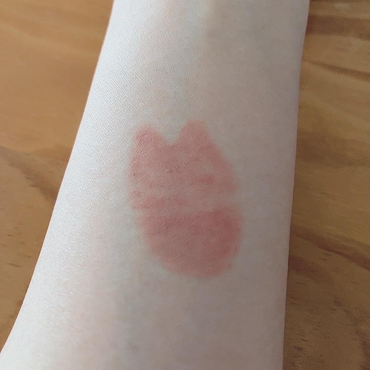 塗ってみてビックリ( ̄∀ ̄) 発色よすぎです✨✨ 若干せっけんの香りもする🧼 発色良すぎてぼかさないと唇がすごいことになるんですけどツヤタイプなのでボカすとツヤが消えちゃうよね… ティッシュオフするとツヤも消えちゃうんだよねぇ… もうちょっと落ち着いた色だといいのかも!!!! 色持ちも想像よりしないかなぁ。一日マスクしてたら普通に落ちてました! 塗り心地はシャネルのインクフュージョンにそっくりです( ^ω^ )