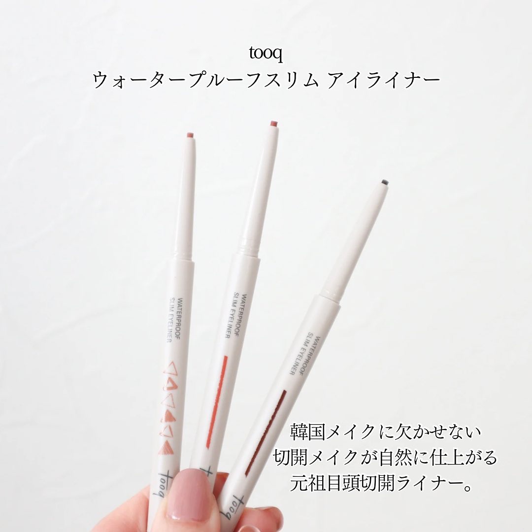 #PR韓国SNSで話題❣️オリーブヤングBESTアイライナー✨【Tooq】ウォータープルーフスリムアイライナーカラバリ豊富でイエベブルベさんどちらも使える🥰なめらかに描けてぼかすこともできるから涙袋メイクにぴったり🩷落ちにくくよれにくいウォー...